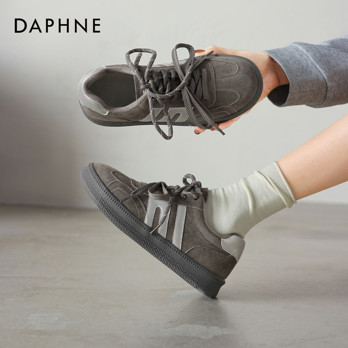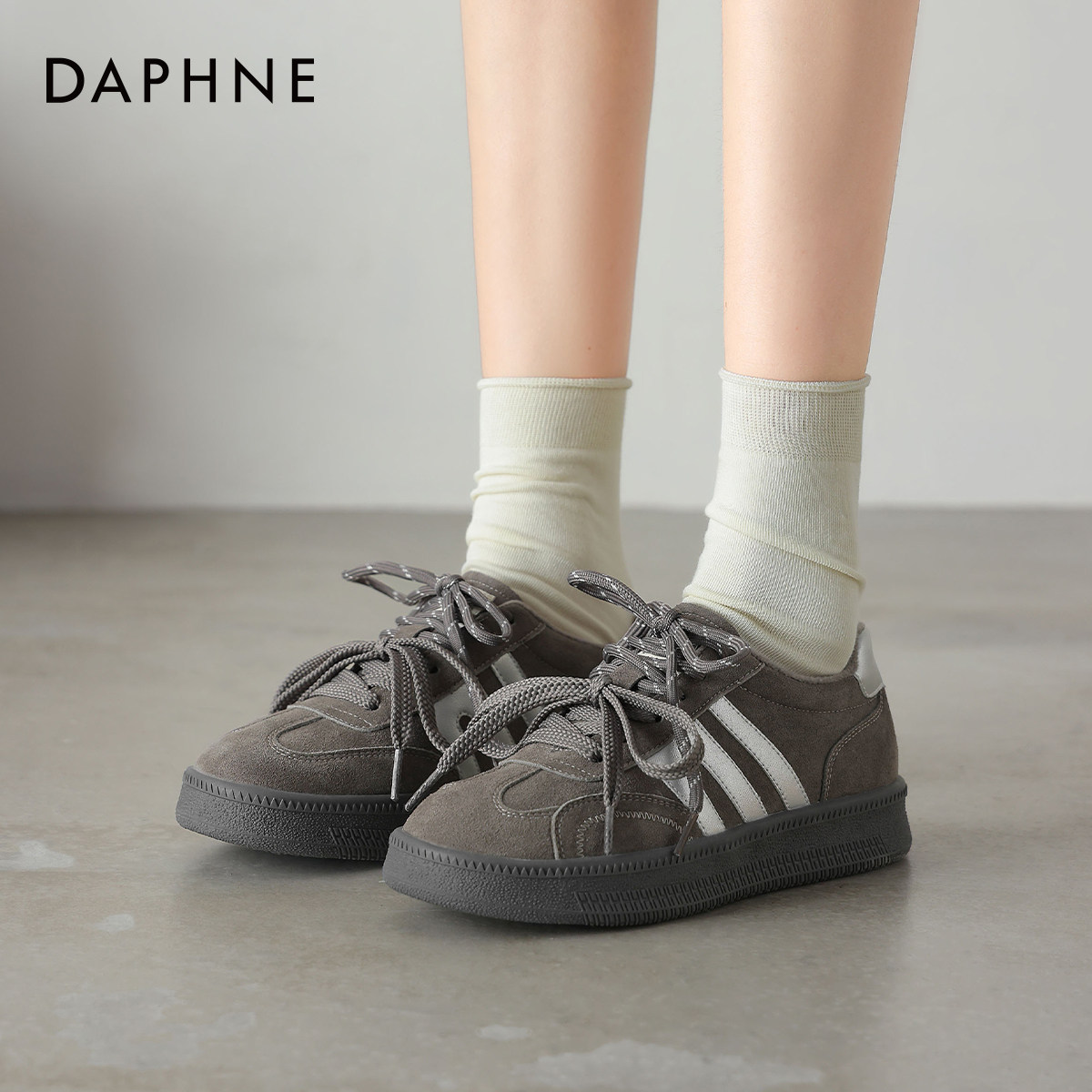达芙妮平底灰色德训板鞋2026新款复古女款休闲女鞋子冬季加绒棉鞋