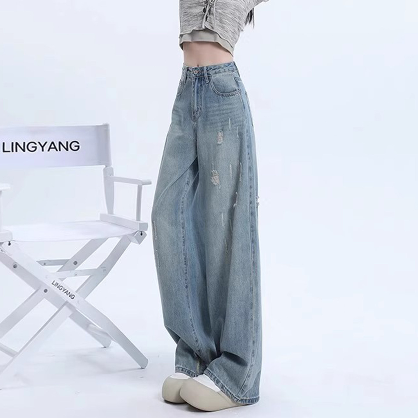 高个子加长复古蓝色牛仔裤女2026春秋新款高腰直筒垂感拖地阔腿裤