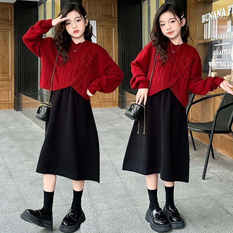 女童裙子套装冬装新款2025年服套装中大童洋气儿童毛衣裙子两件套