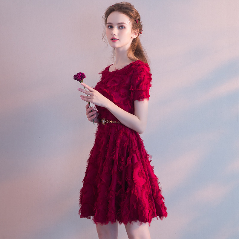 红色年会晚宴礼服女短款小个子敬酒服新娘回门订婚法式连衣裙秋冬