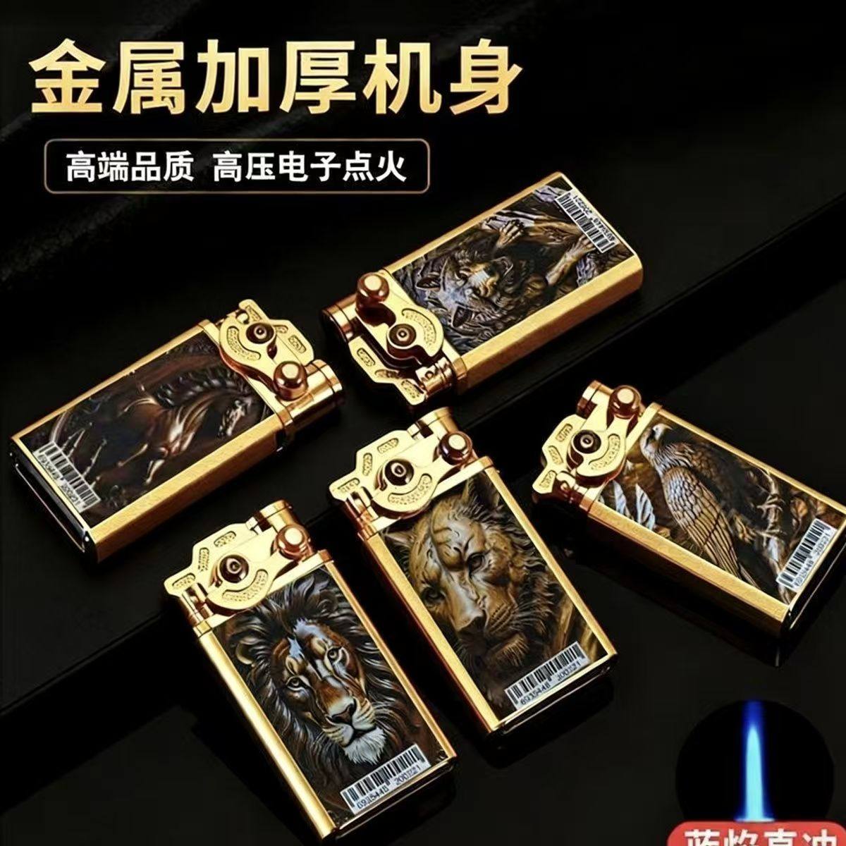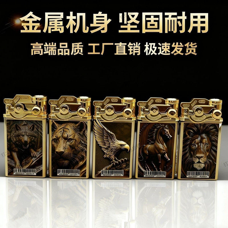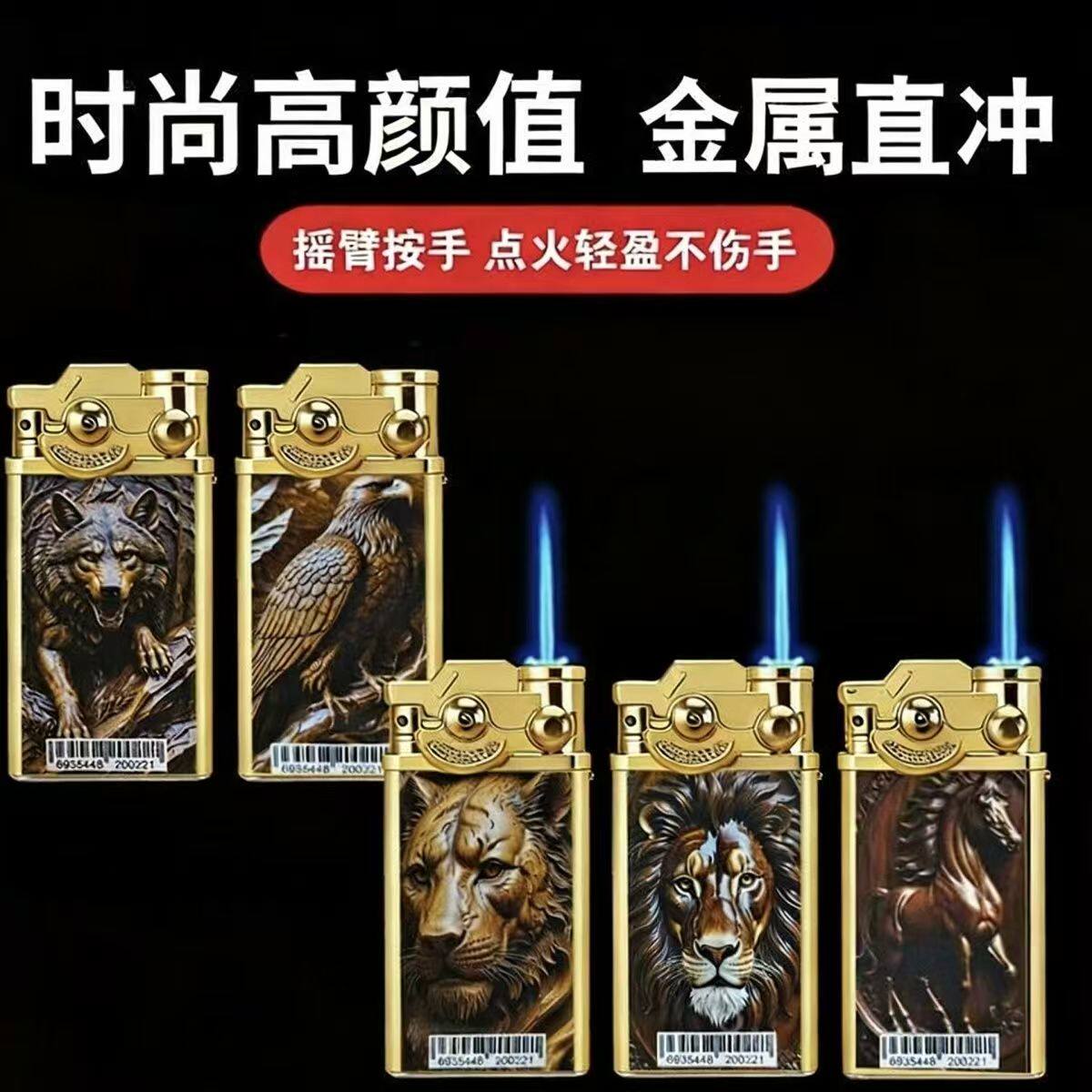 新款2025防风打火机摇臂金属蓝焰直冲复古广告刻字定制送男友礼物