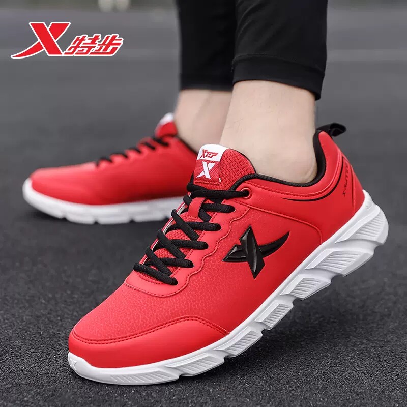 特步男鞋跑步鞋男正品红色冬季皮面防水休闲鞋子本命年运动鞋男款