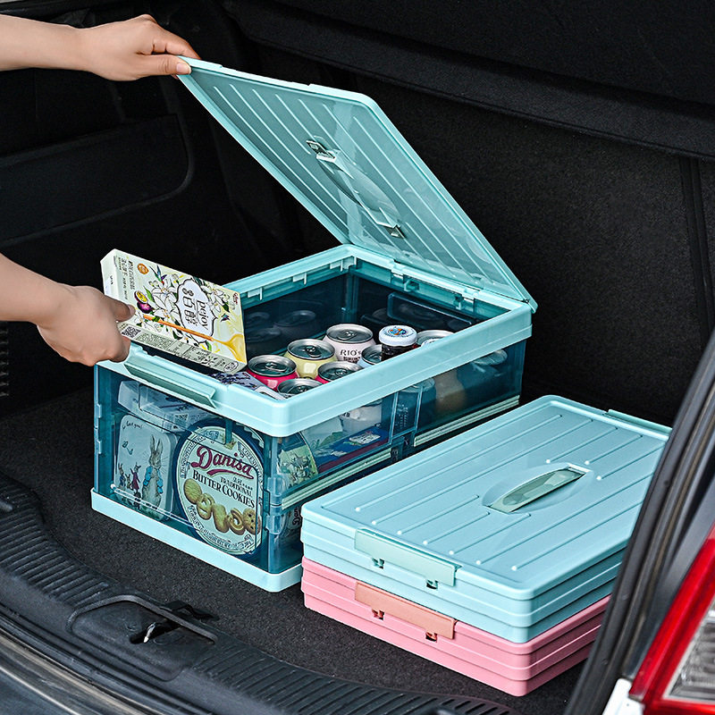 透明可折叠汽车后备箱收纳箱车用储物盒子车载用S品塑料整理筐神