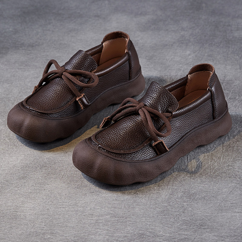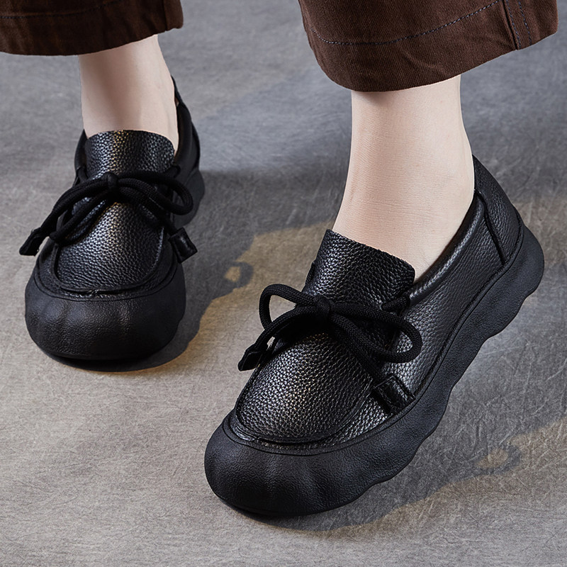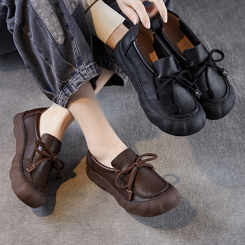 头层牛皮大码女鞋35-41休闲真皮乐福鞋软皮软底圆头单鞋不累脚鞋