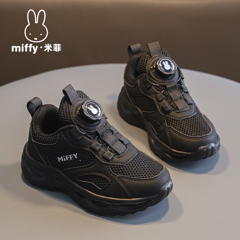 米菲女童鞋子2026春夏季新款儿童透气网面女孩单网薄款黑色运动鞋