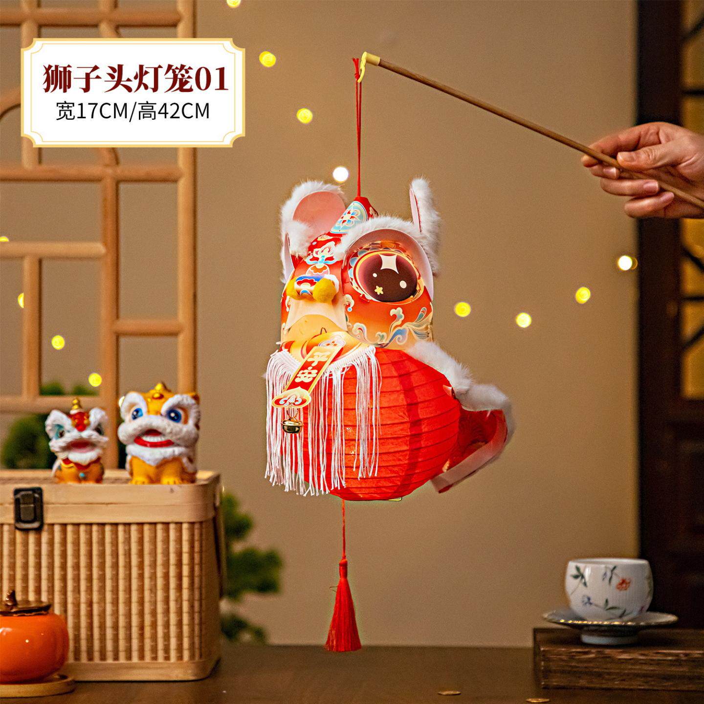儿童节醒狮灯笼儿童手工元宵节手提发光舞狮子花灯摆摊