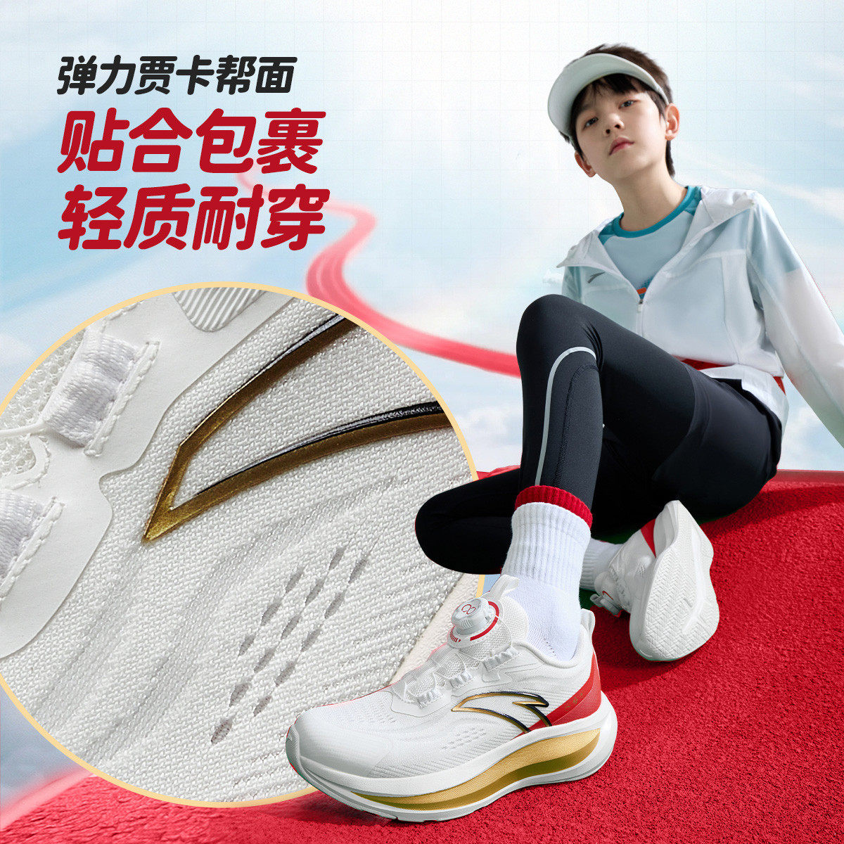 安踏儿童凌云男大童跑鞋2026新款舒适防滑耐磨学生跑步旋钮运动鞋