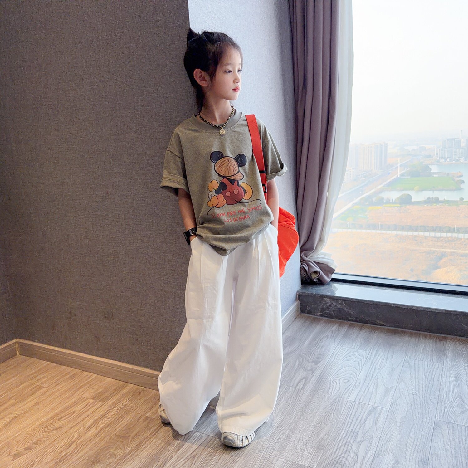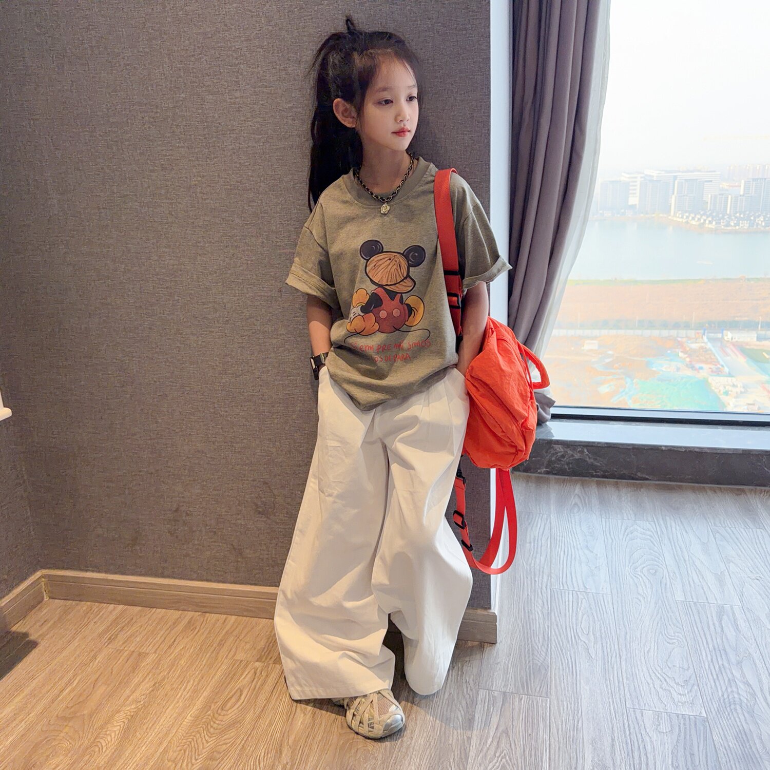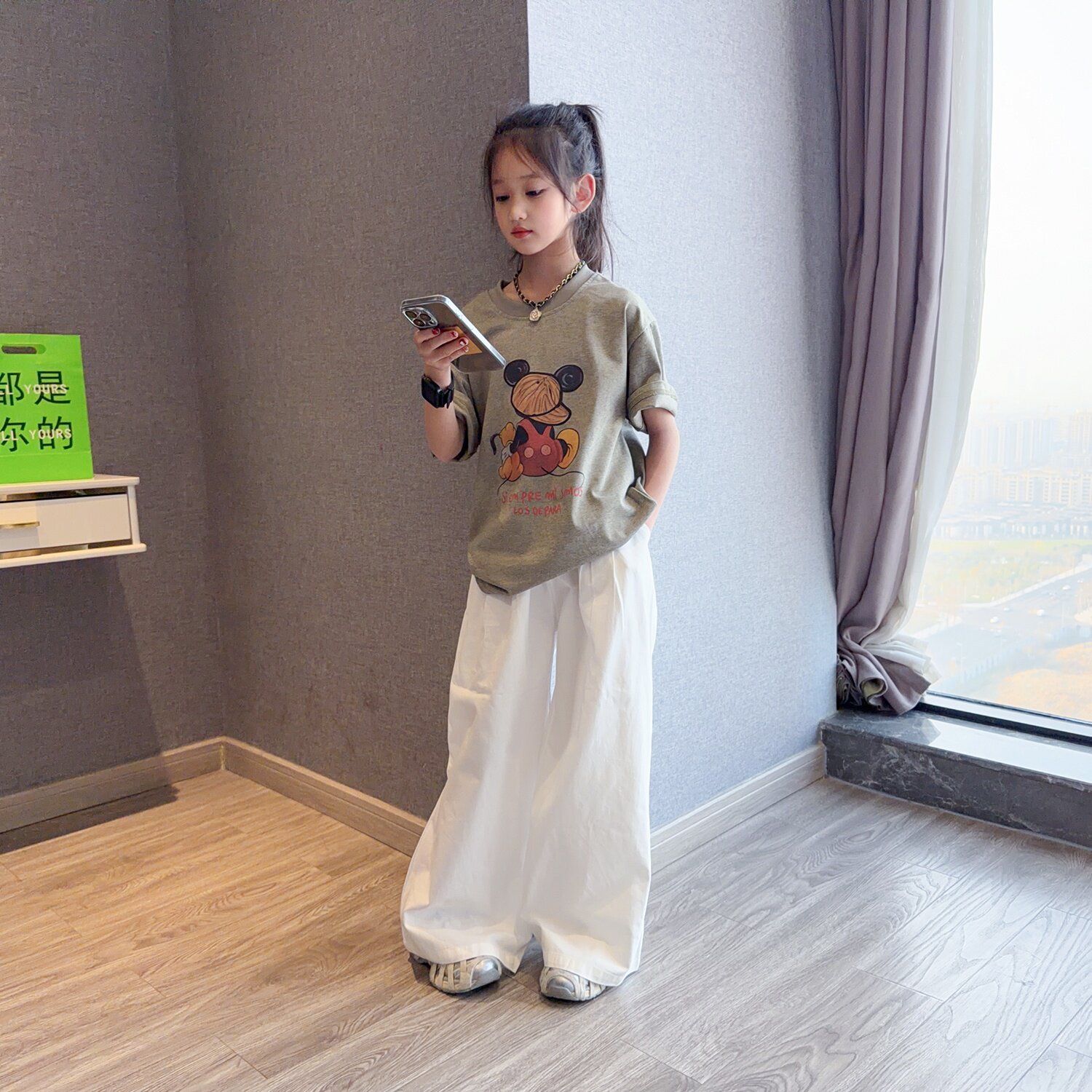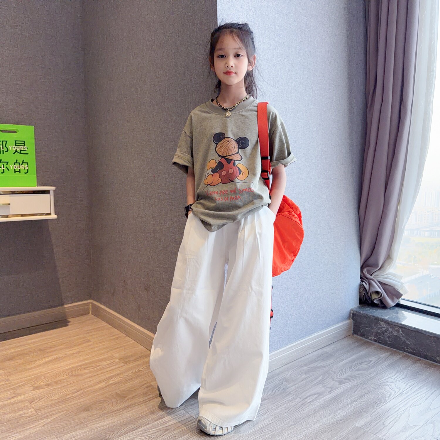 女童夏季套装2026新款洋气女孩韩系短袖T恤大童休闲阔腿裤两件套