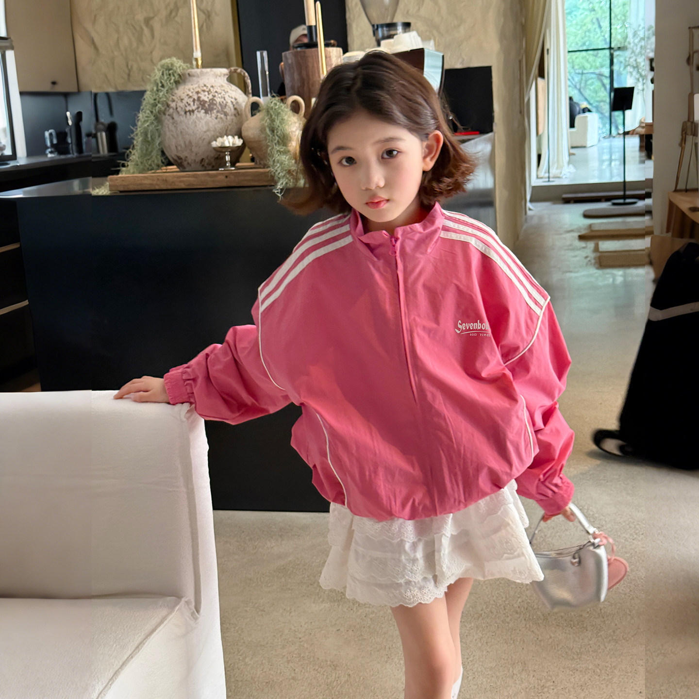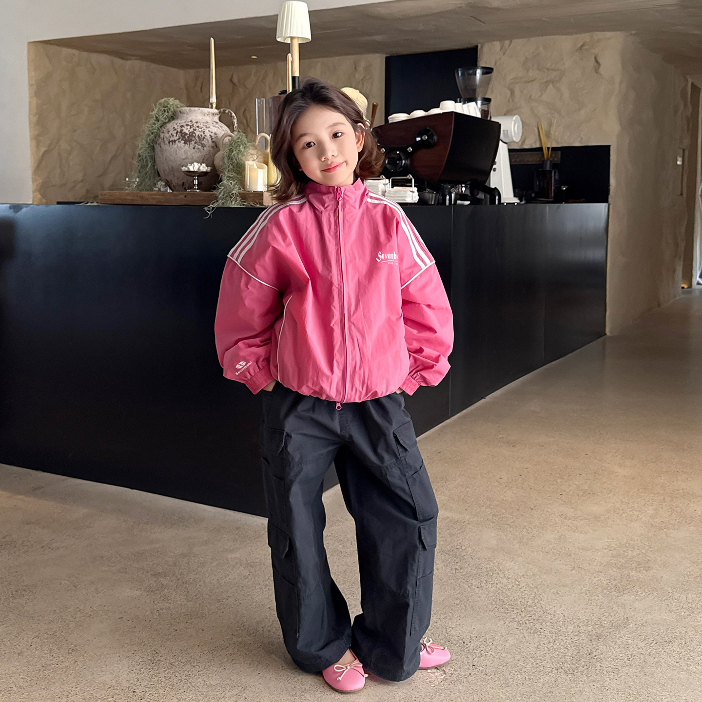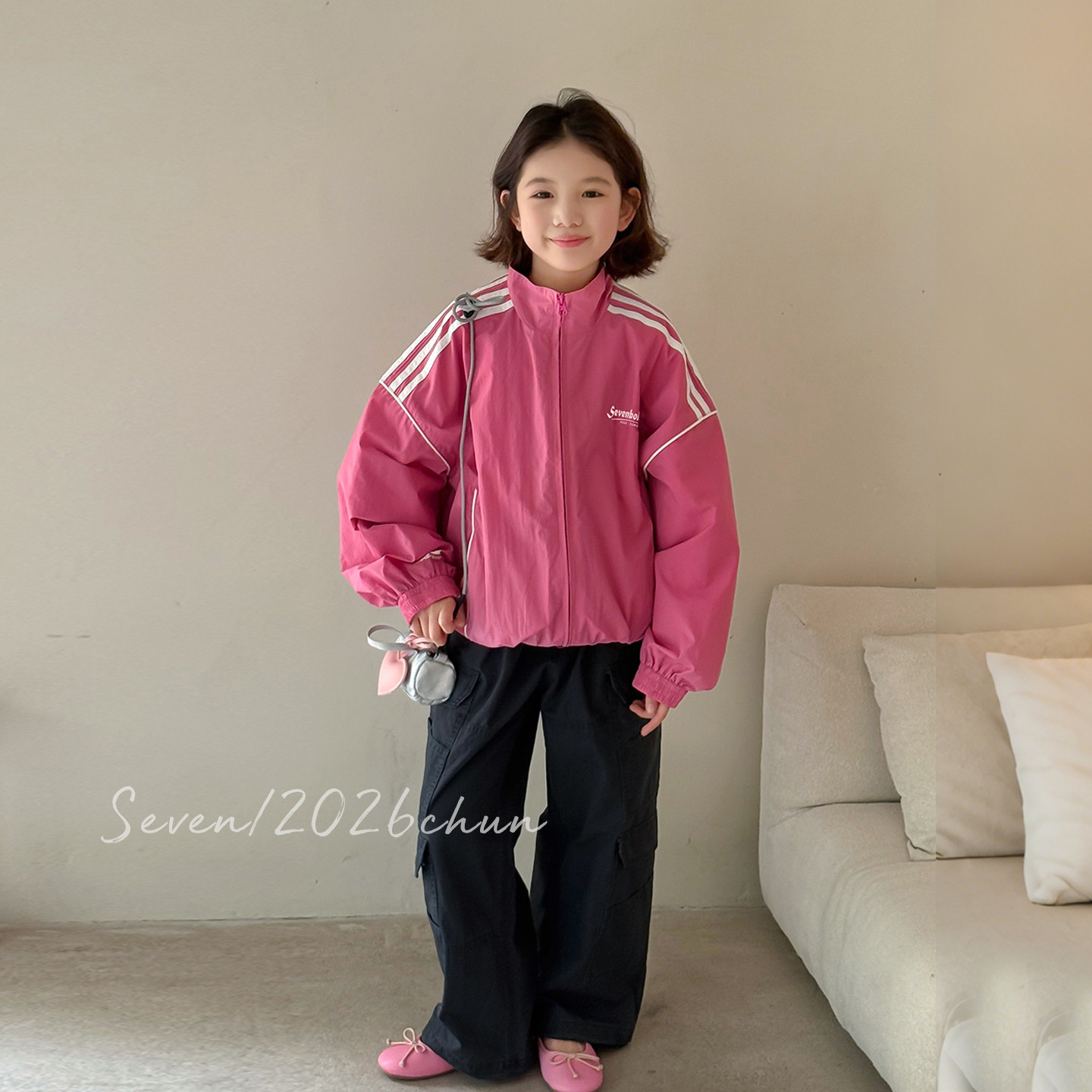 【亲子】柒号童仓女大童美式运动外套春装新款儿童条纹立领上衣潮