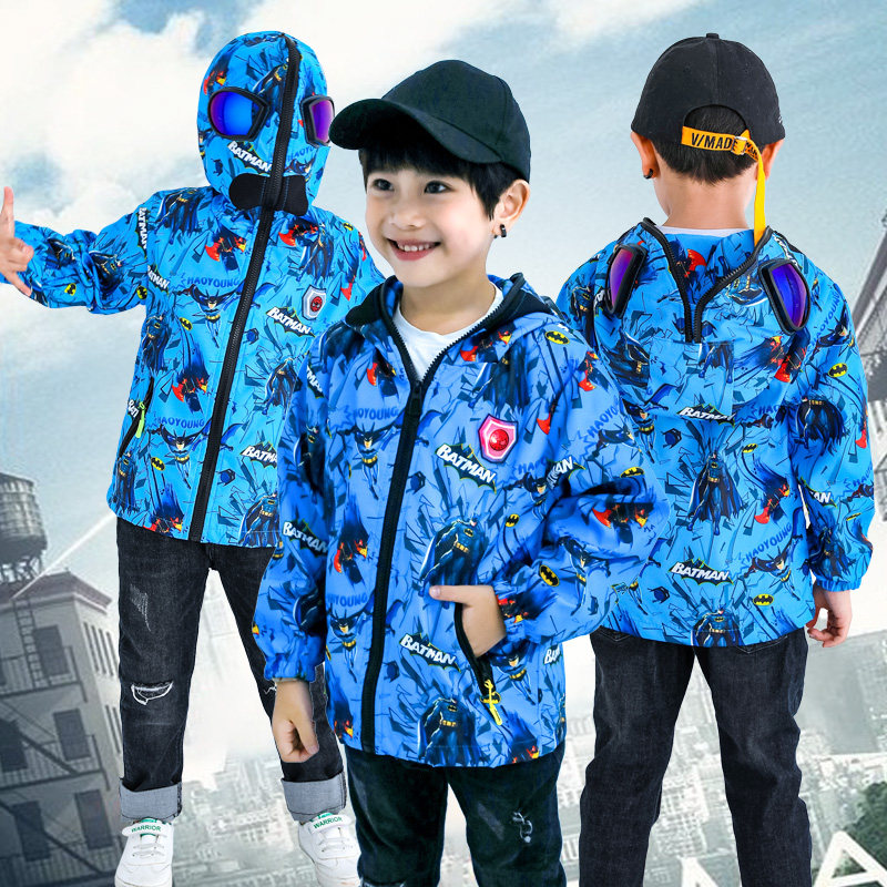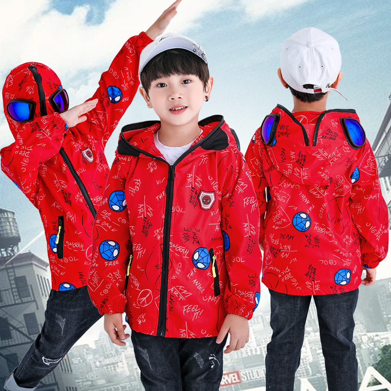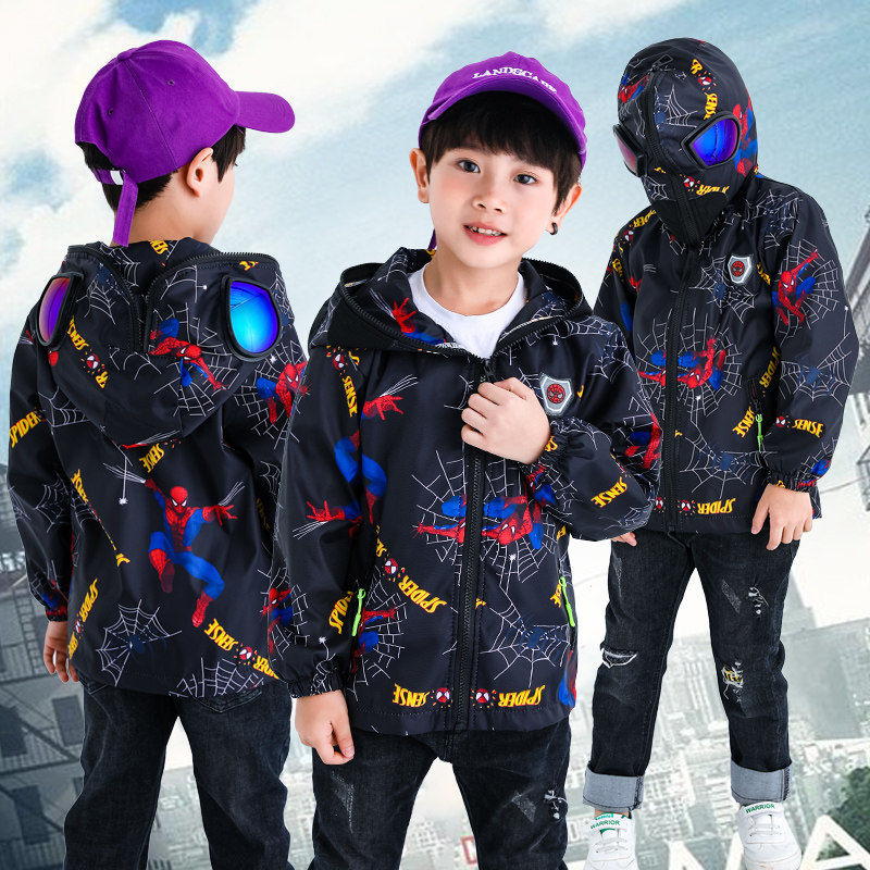 男童蜘蛛侠眼镜三合一冲锋衣秋冬款中大儿童奥特曼加绒可拆棉外套