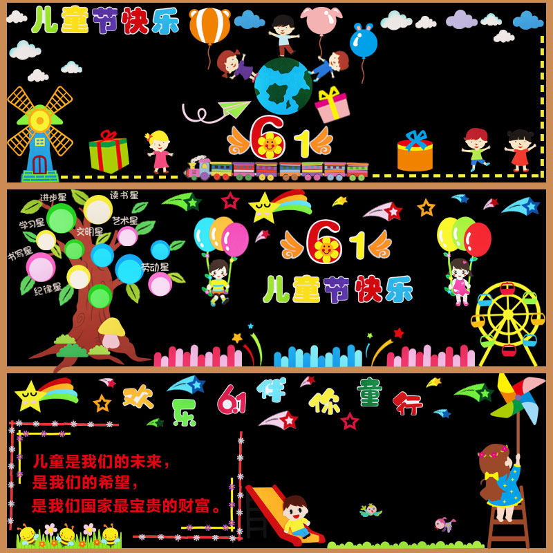 六一儿童节黑板报装饰墙贴幼儿园61主题小学班级教室文化布置材料