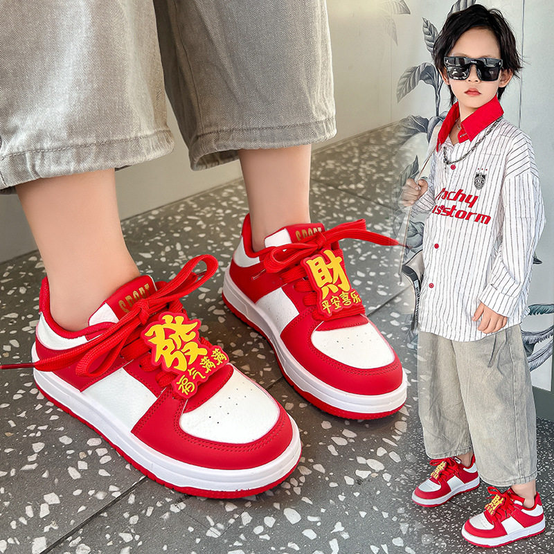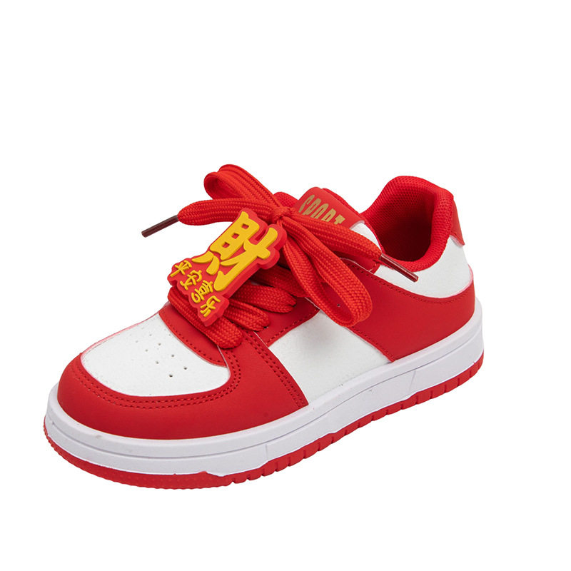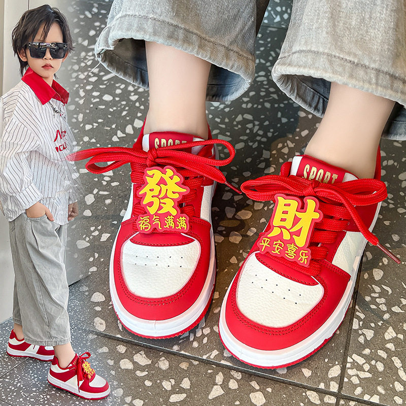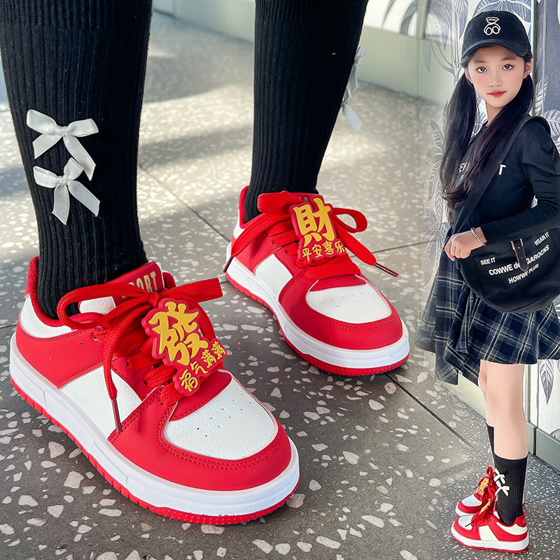 女童红色板鞋2026春季新款男童时尚透气运动鞋儿童休闲鞋中大童鞋