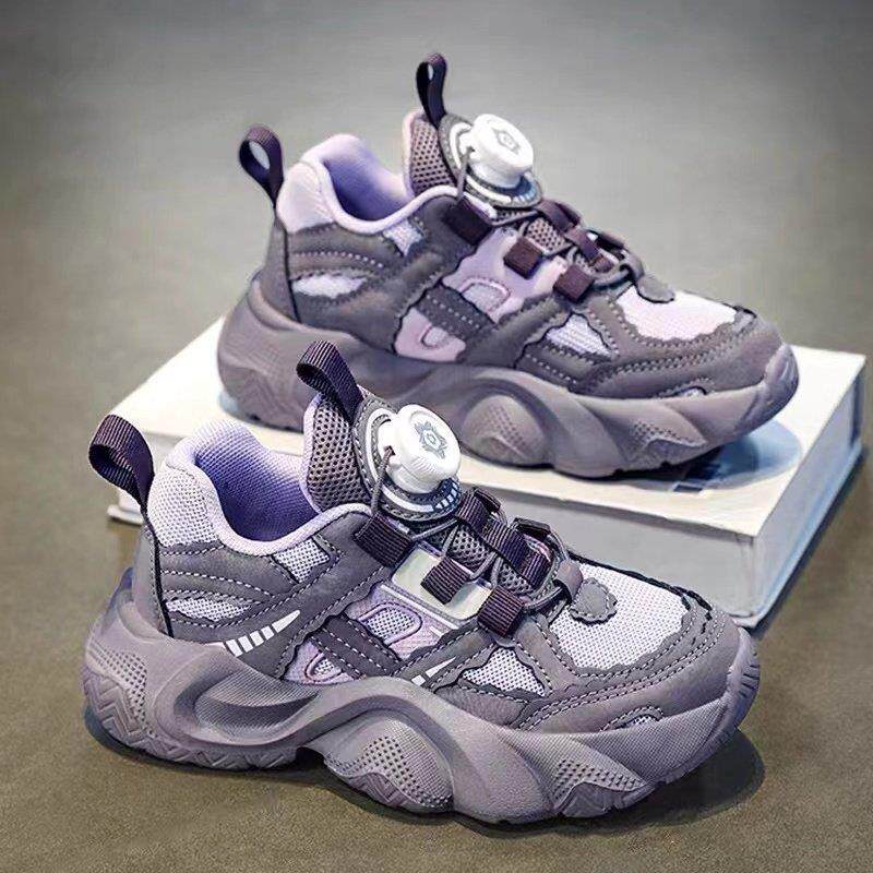 女童鞋子2026春季新款旋钮扣儿童运动鞋新款网面中大童耐脏老爹鞋