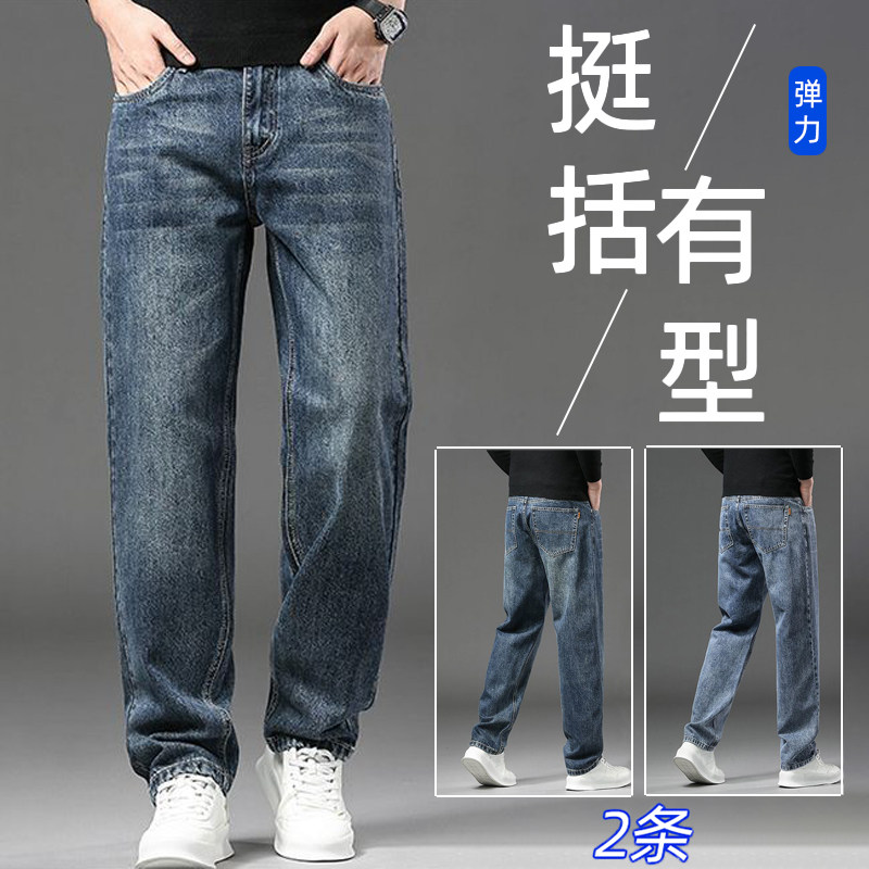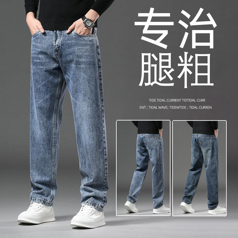 春夏款男士牛仔裤直筒宽松2026春季新款长裤高端浅蓝色弹力休闲裤