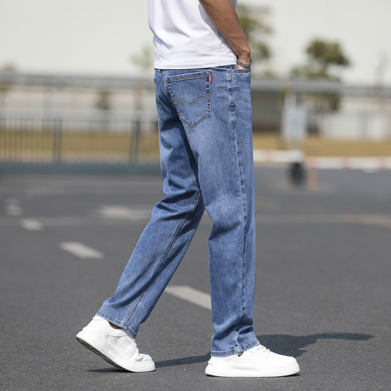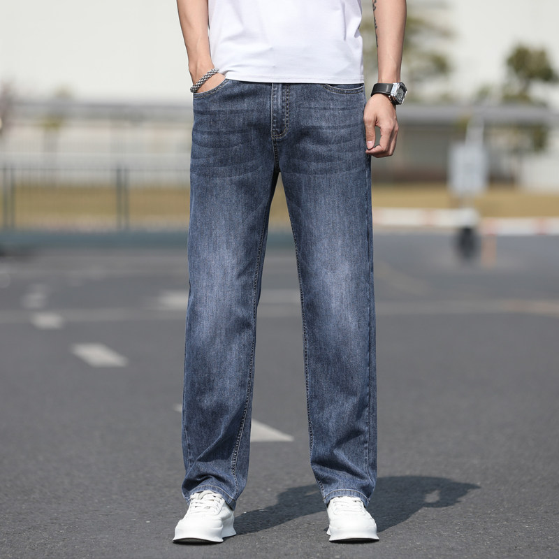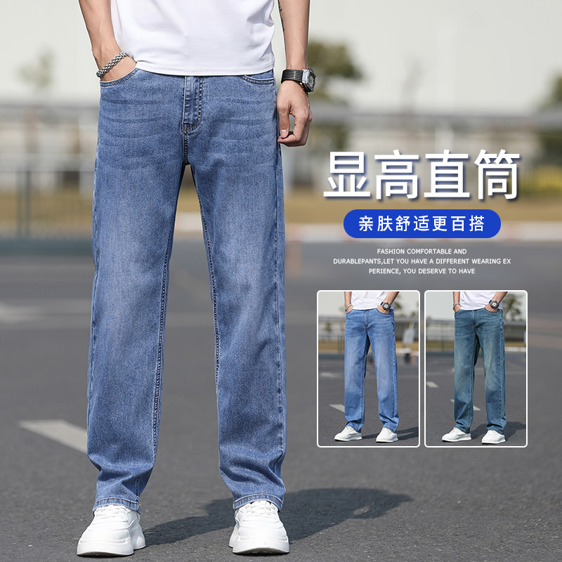 春夏季浅蓝色弹力牛仔裤男士2026新款大码宽松直筒休闲长裤子男装