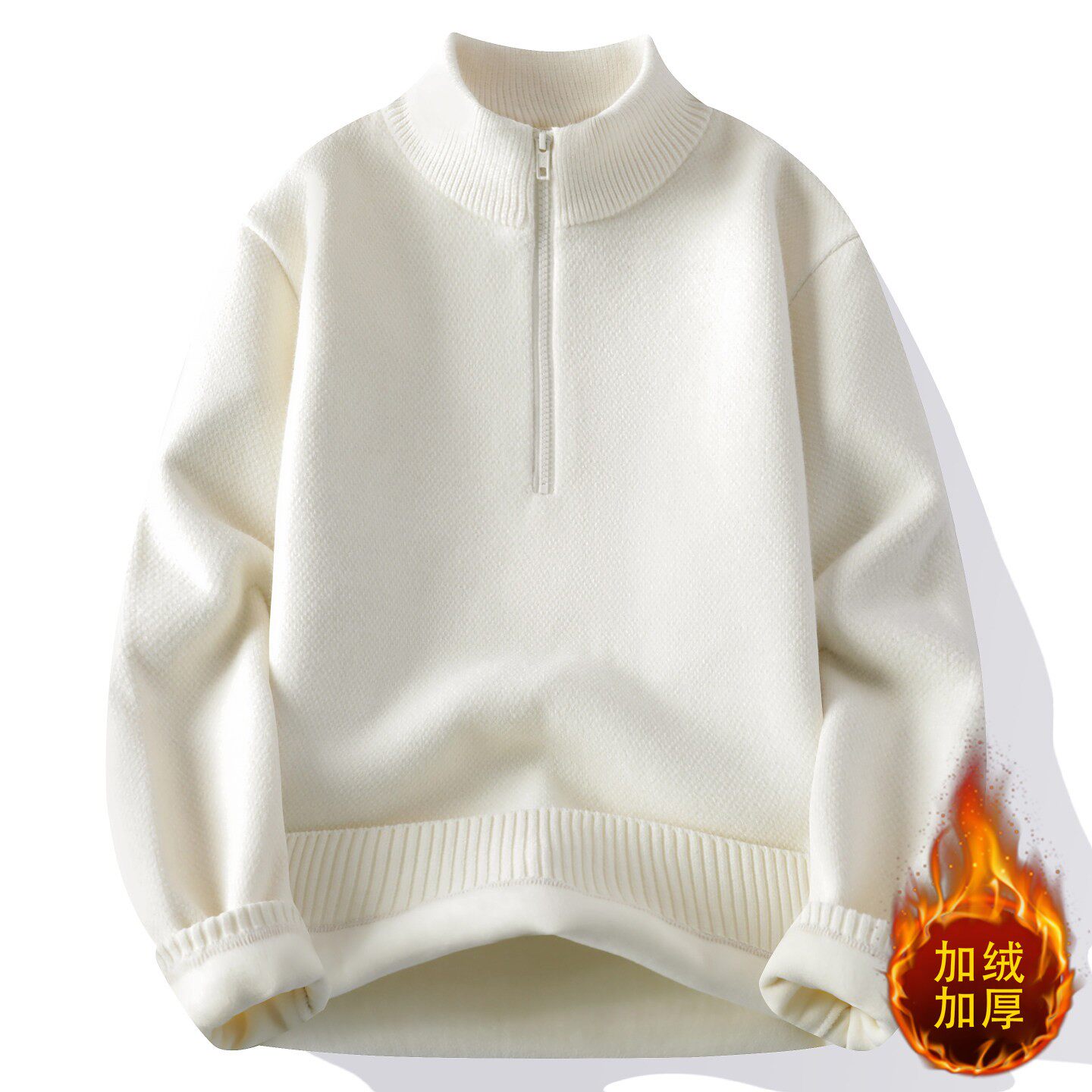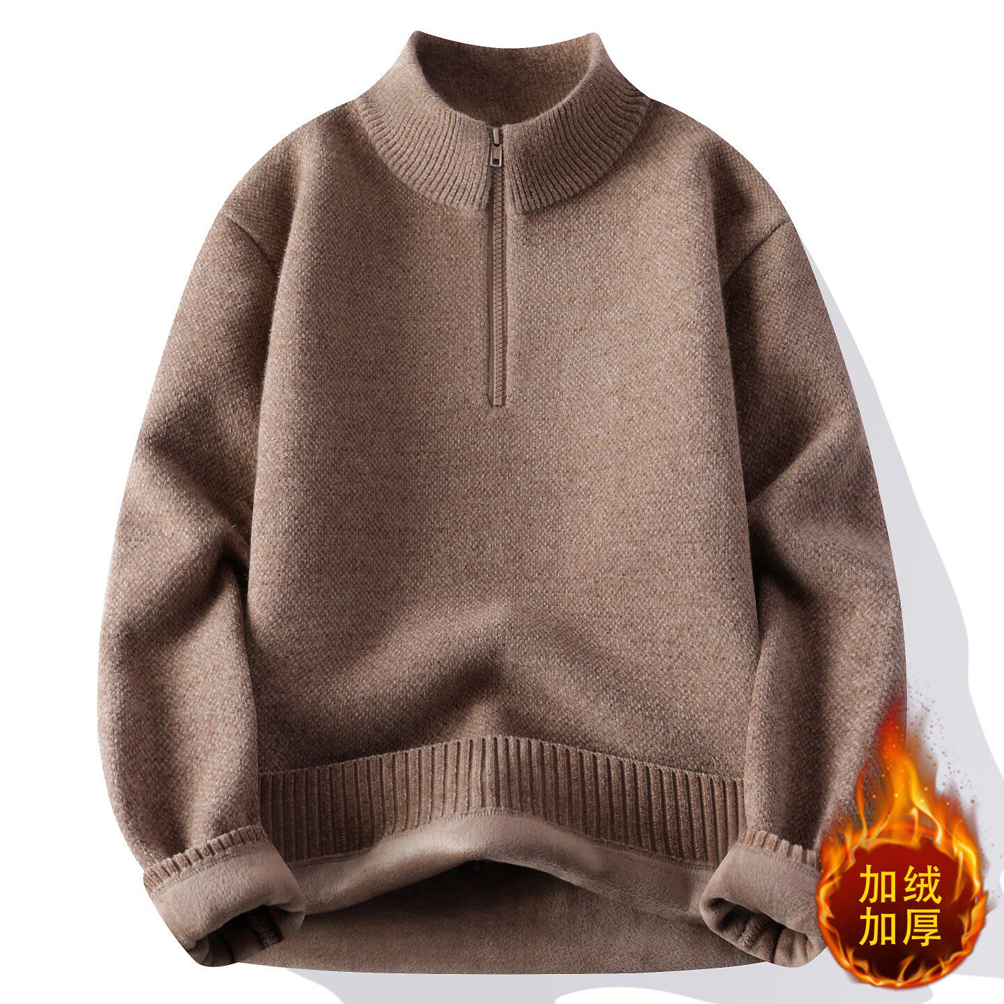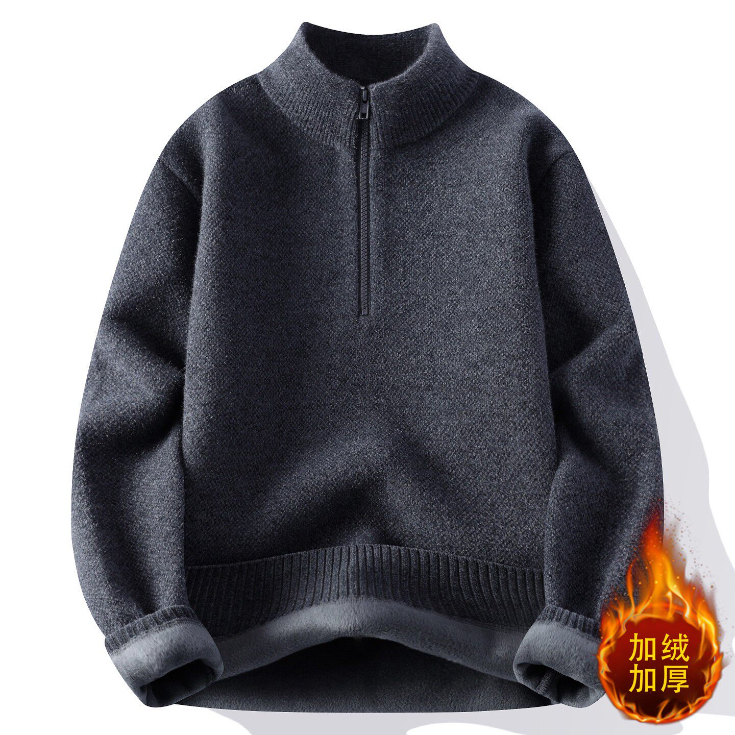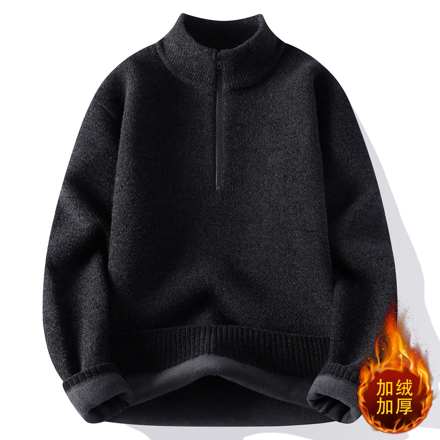 一体绒毛衣男冬季保暖半高领拉链卫衣加绒加厚男款上衣内搭打底衫