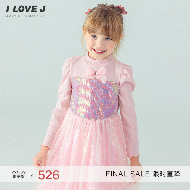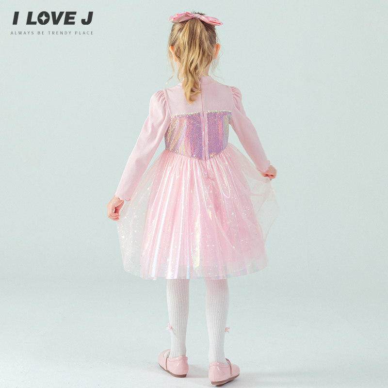 ILOVEJ韩国童装女童粉色生日派对冬季小礼服公主连衣裙/JXWOP04