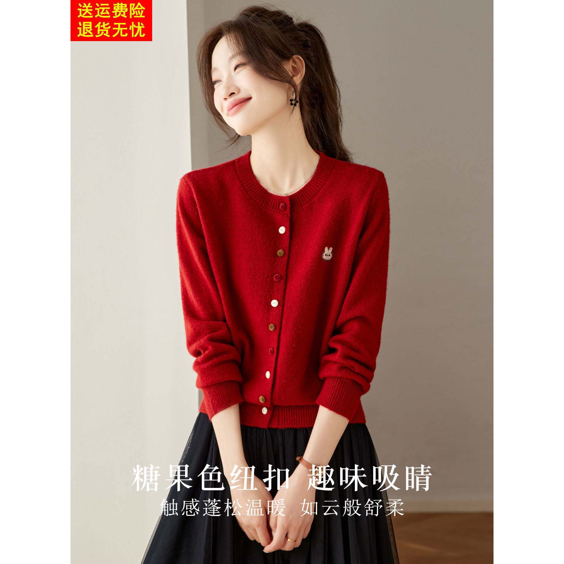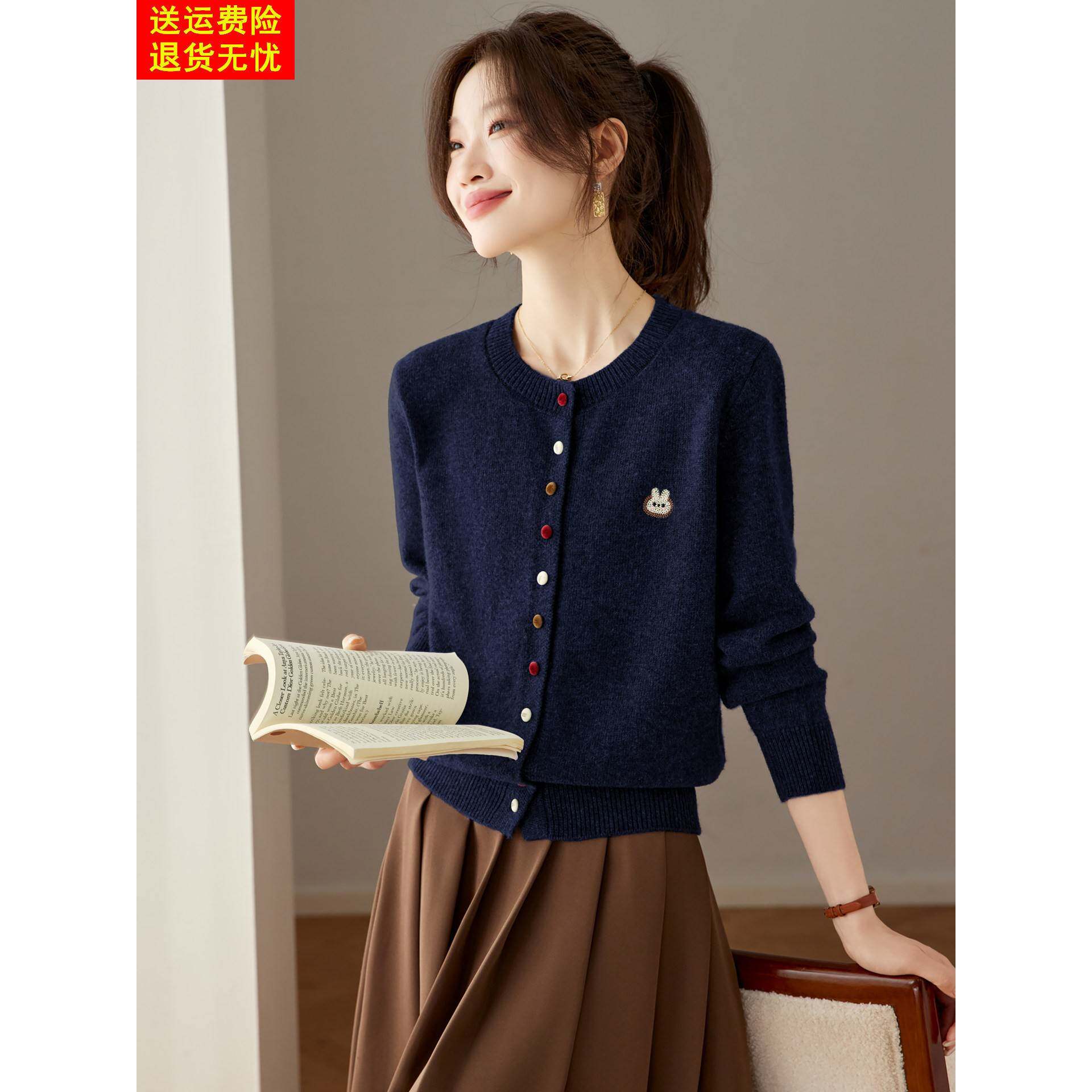 2025秋冬上新女装减龄刺绣圆领开衫上衣多色纽扣针织衫毛衣外套
