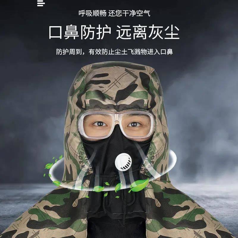 打磨专用头套全脸劳保防尘披肩帽男款帽子防护面罩工业打药打农药