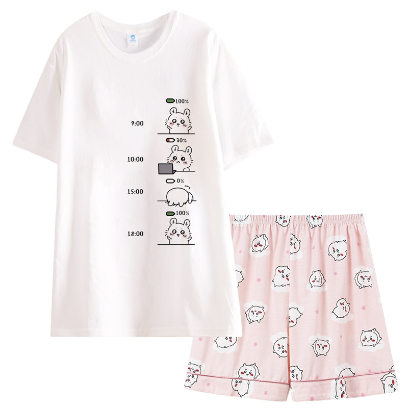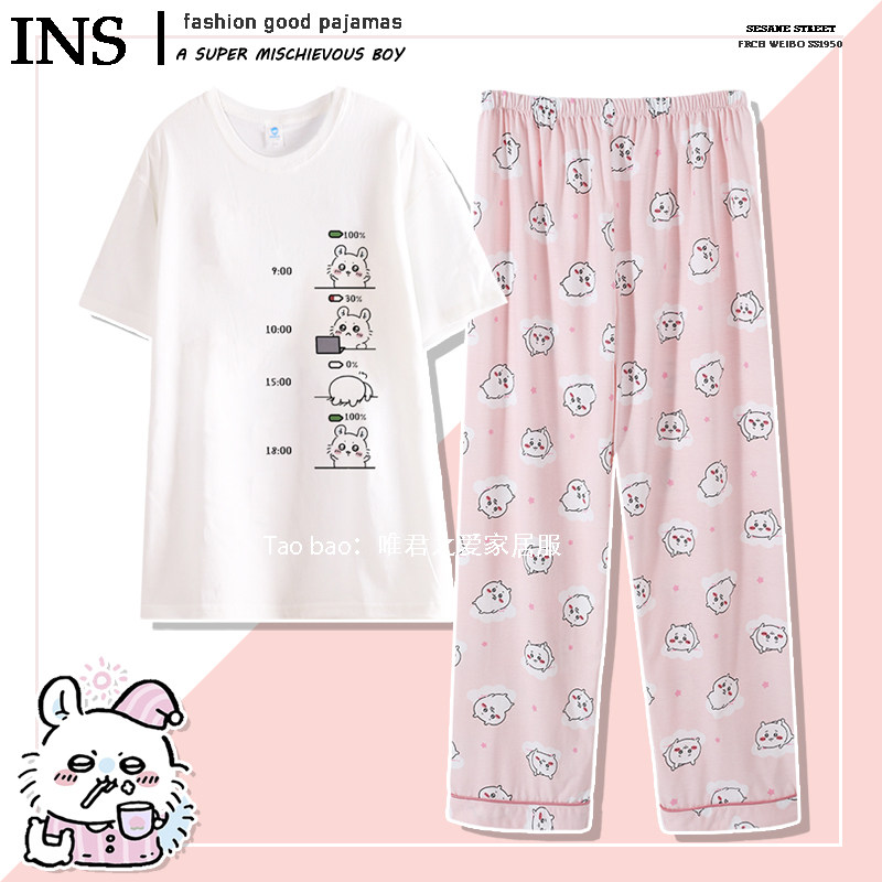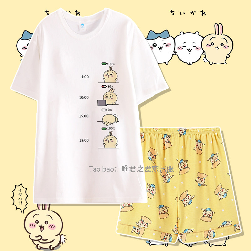 圆领chiikawa飞鼠睡衣女款夏短袖吉伊卡哇家居服夏季套头宽松纯棉