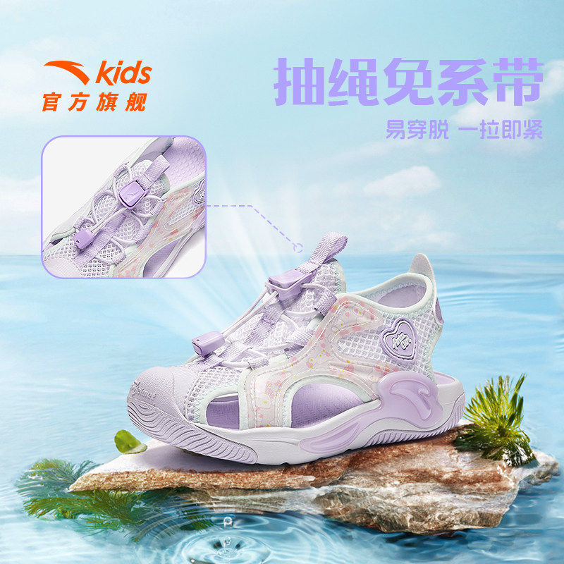 安踏儿童小童女宝包头运动凉鞋2026夏季宝宝女童鞋户外溯溪沙滩鞋