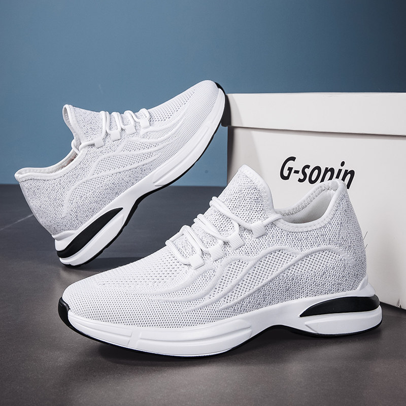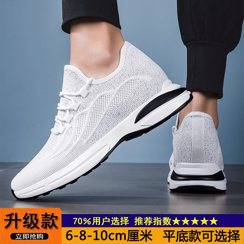 增高鞋男10cm秋季透气网面鞋隐形内增高6cm8cm飞织轻便休闲运动鞋