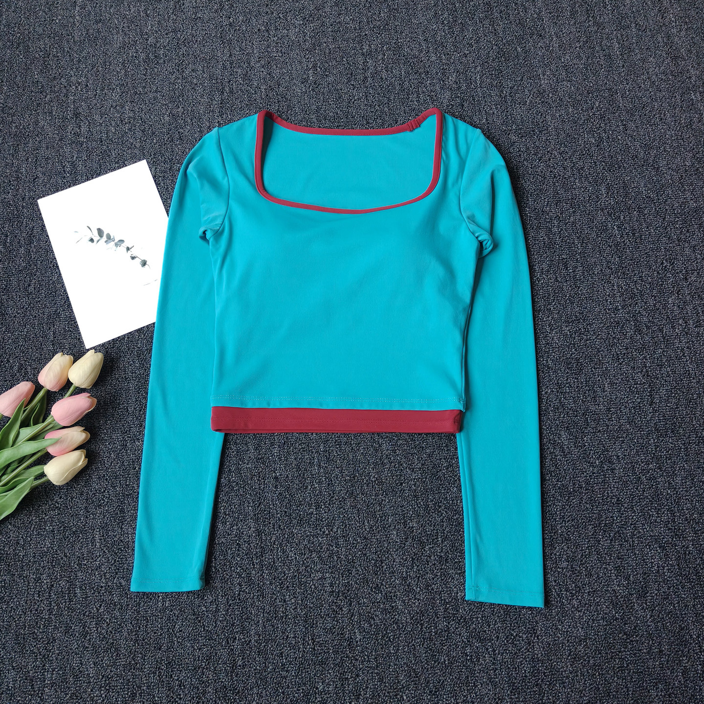 秋季新款撞色瑜伽服女带胸垫上衣修身显瘦普拉提跑步运动健身长袖