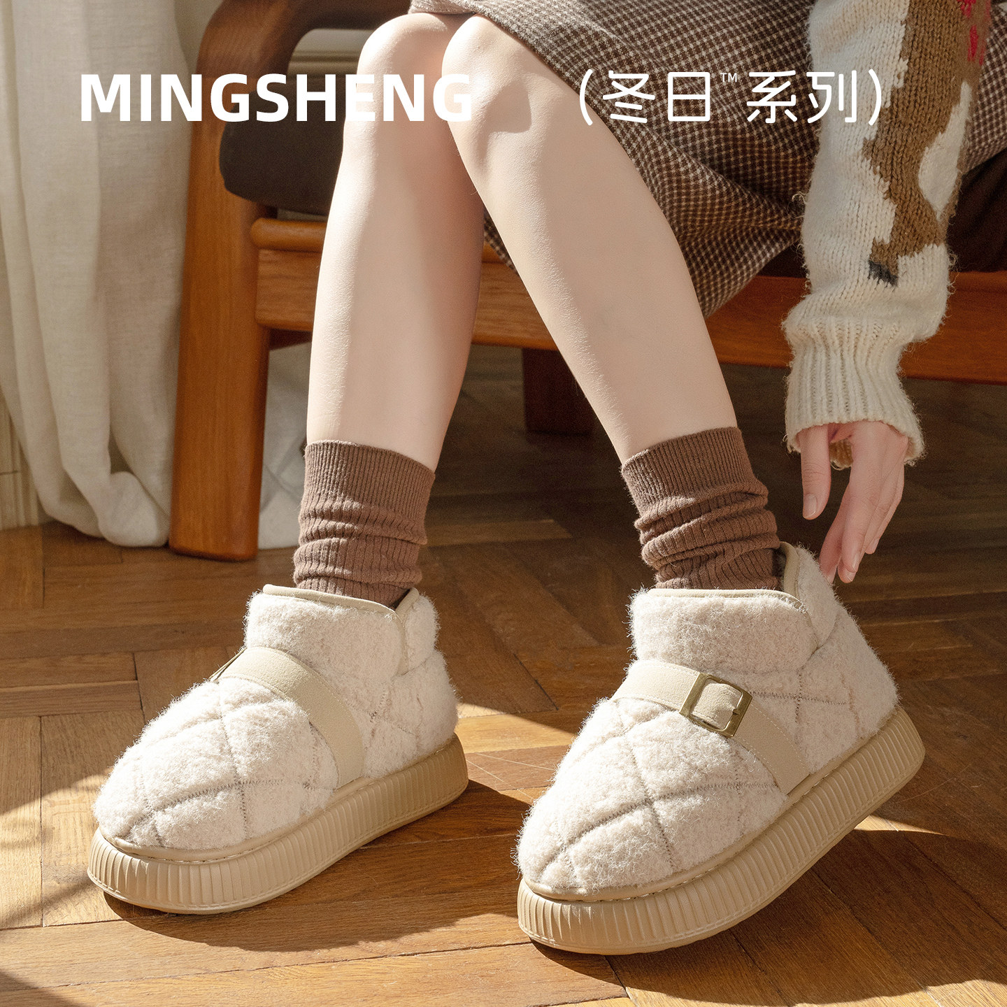 简约厚底棉拖鞋女款全包跟冬季外穿保暖时尚耐磨加绒室内家居棉鞋