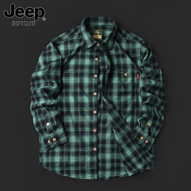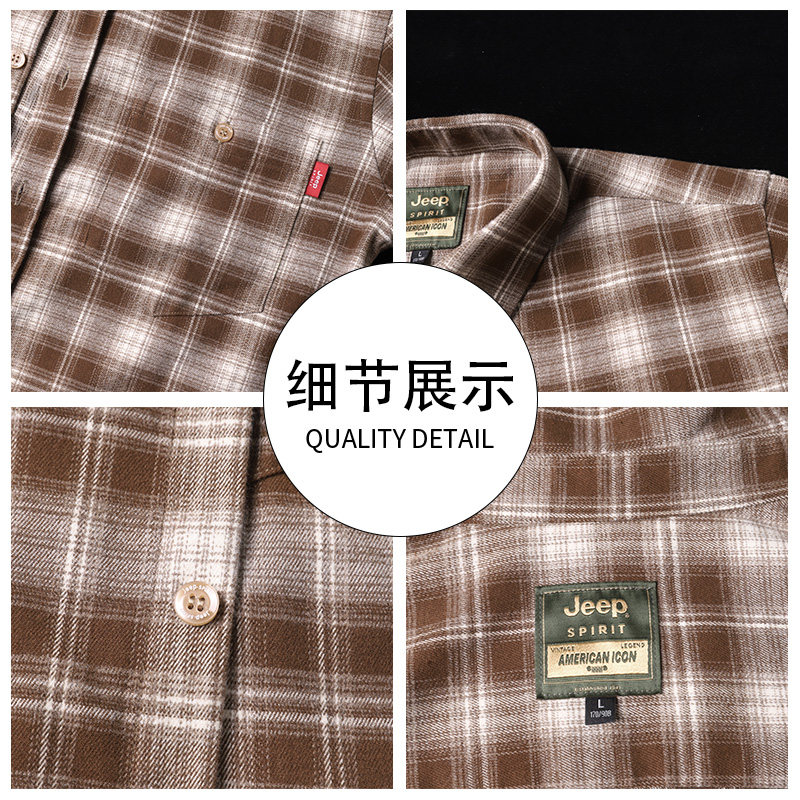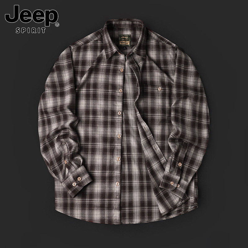 311线报网描述:吉普专柜大码休闲长袖春季新款格纹衬衣外套