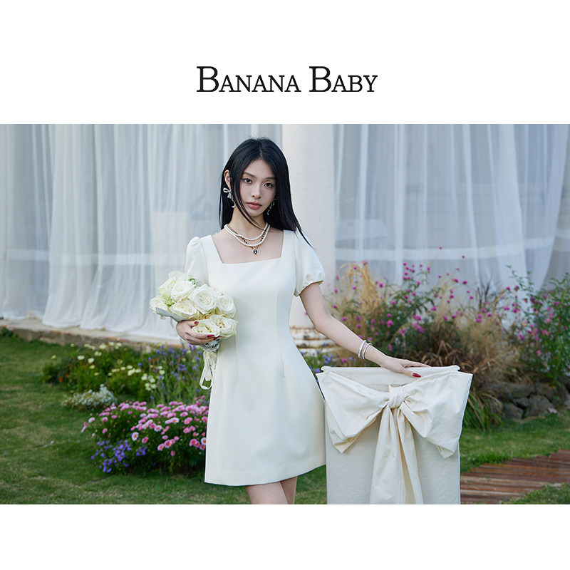 BANANA BABY2026夏季新款法式复古连衣裙女简约通勤小个子短裙