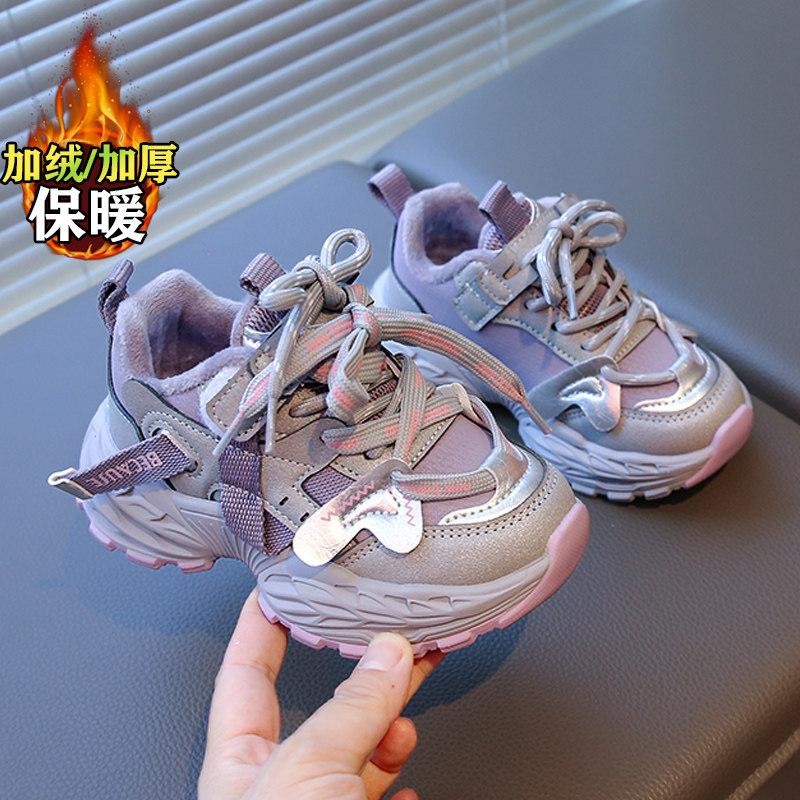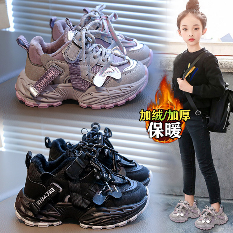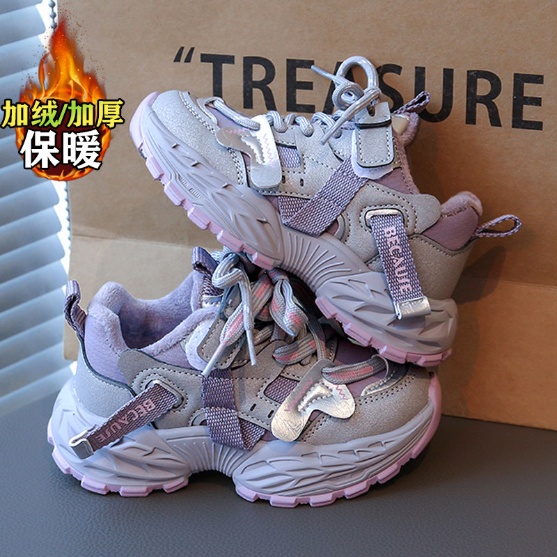 ABC defier女童鞋加绒老爹鞋2025新款冬季儿童公主二棉防滑运动鞋