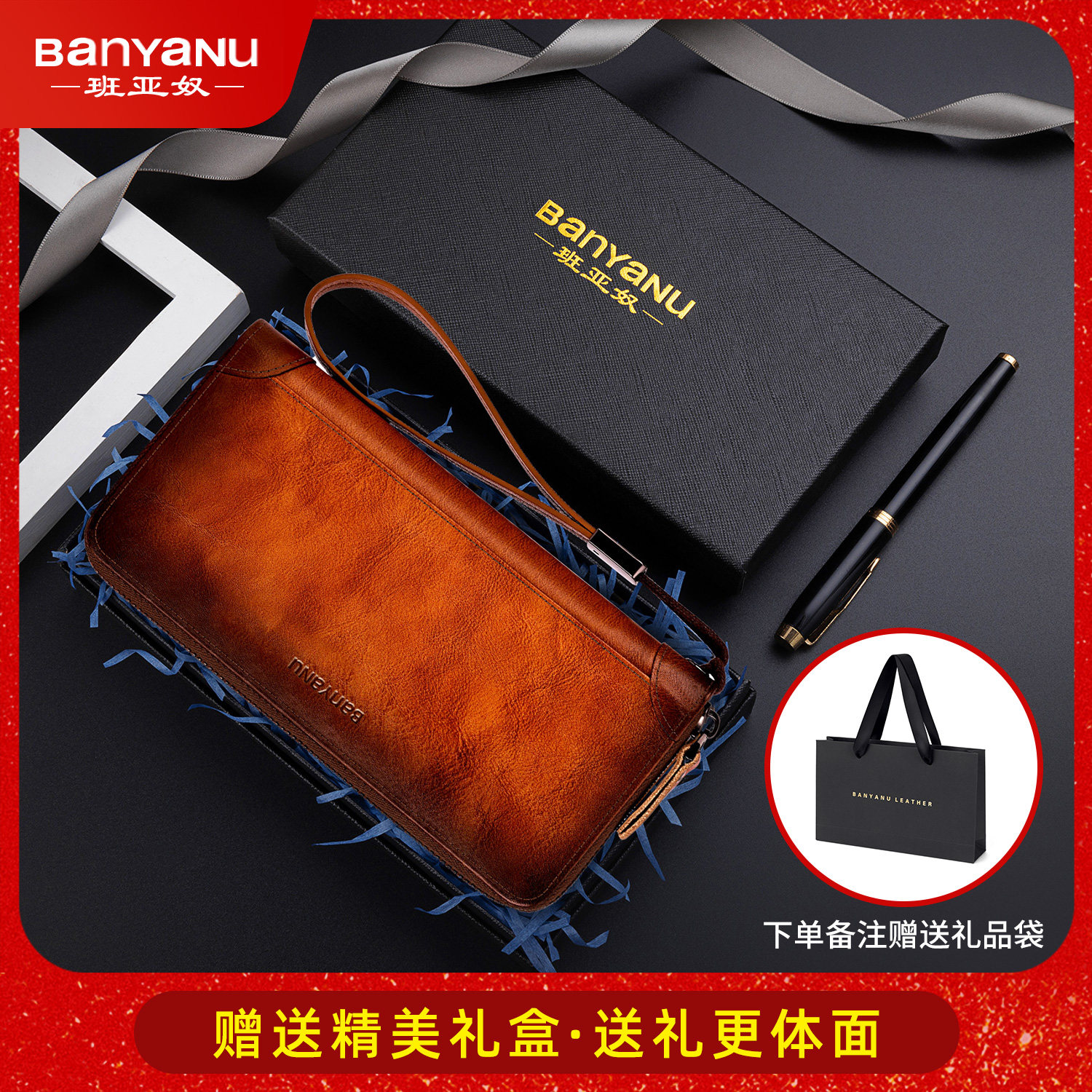 班亚奴男士钱包长款拉链真皮新款牛皮卡包大容量手拿包皮夹男款