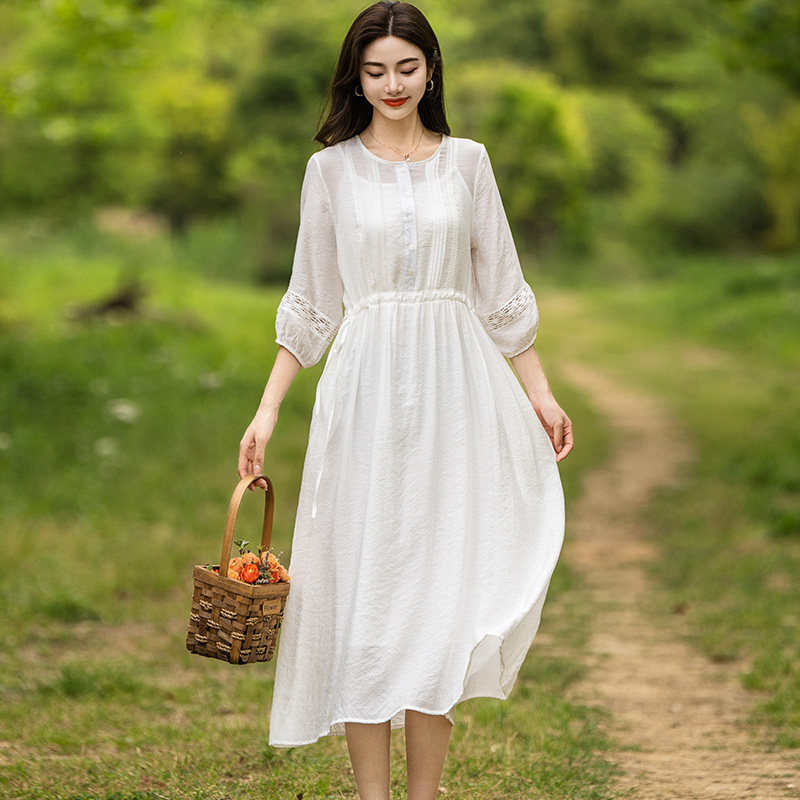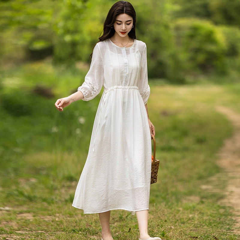 飘逸仙气白色连衣裙女夏季高级感海边三亚度假旅游沙滩长裙