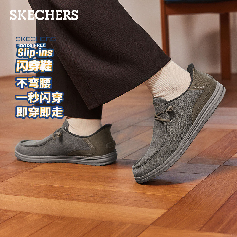 斯凯奇闪穿鞋男一脚蹬休闲板鞋2026夏季新款百搭舒适帆布乐福鞋子