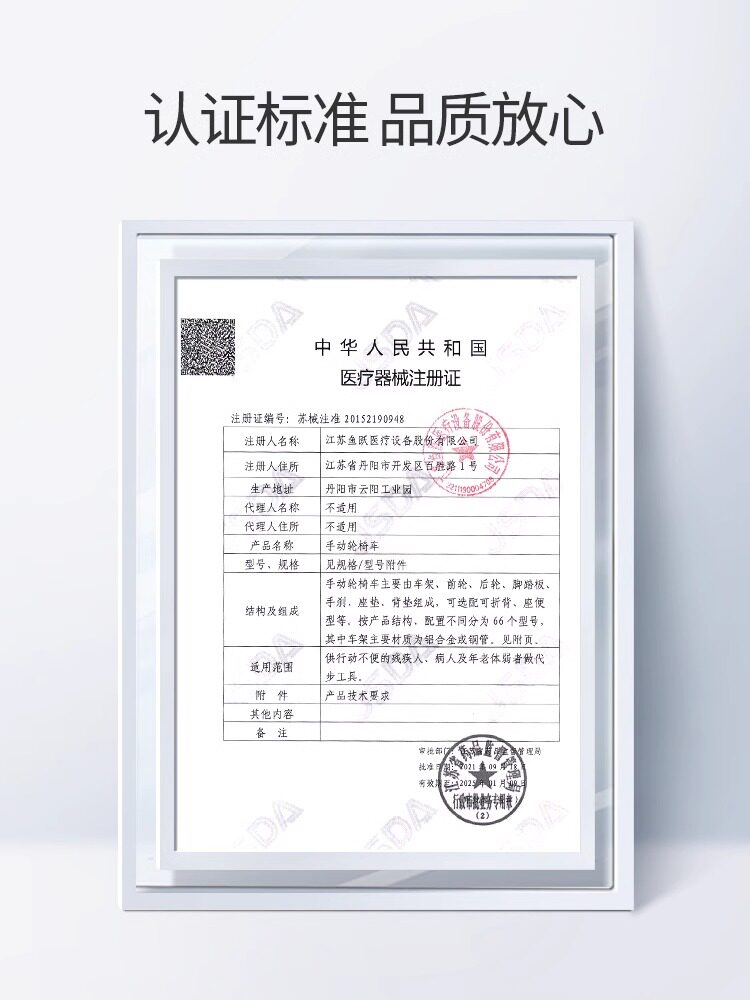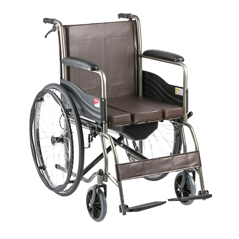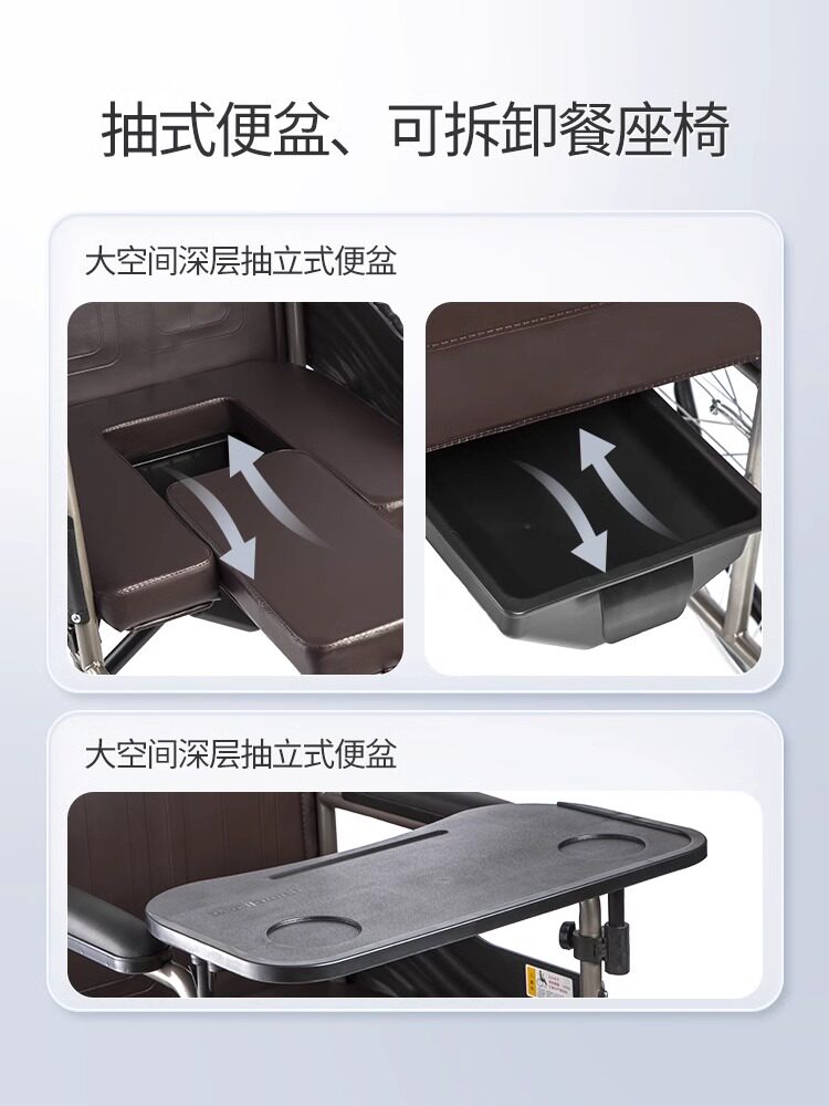 鱼跃手动轮椅可折叠轻便助行器残疾人老人带便盆手推车H058B