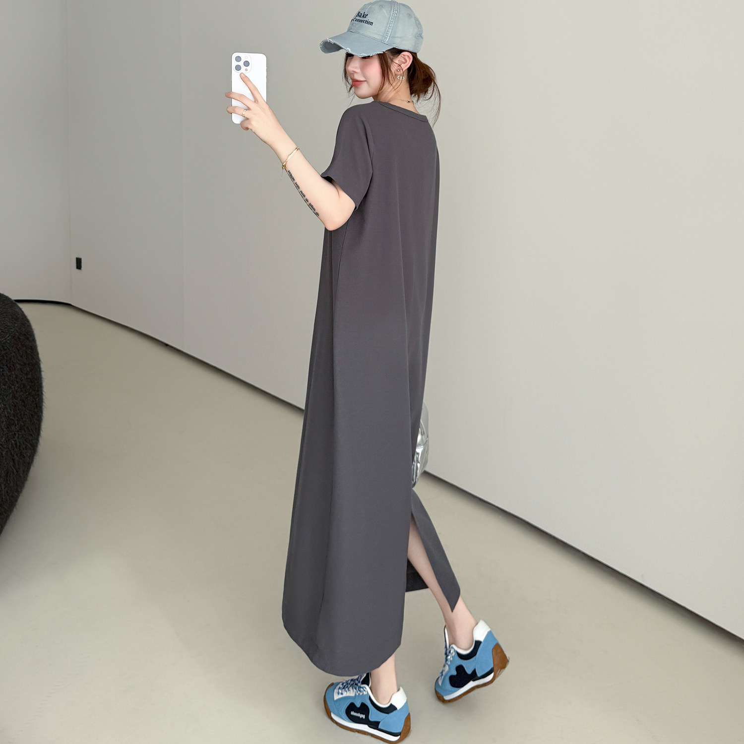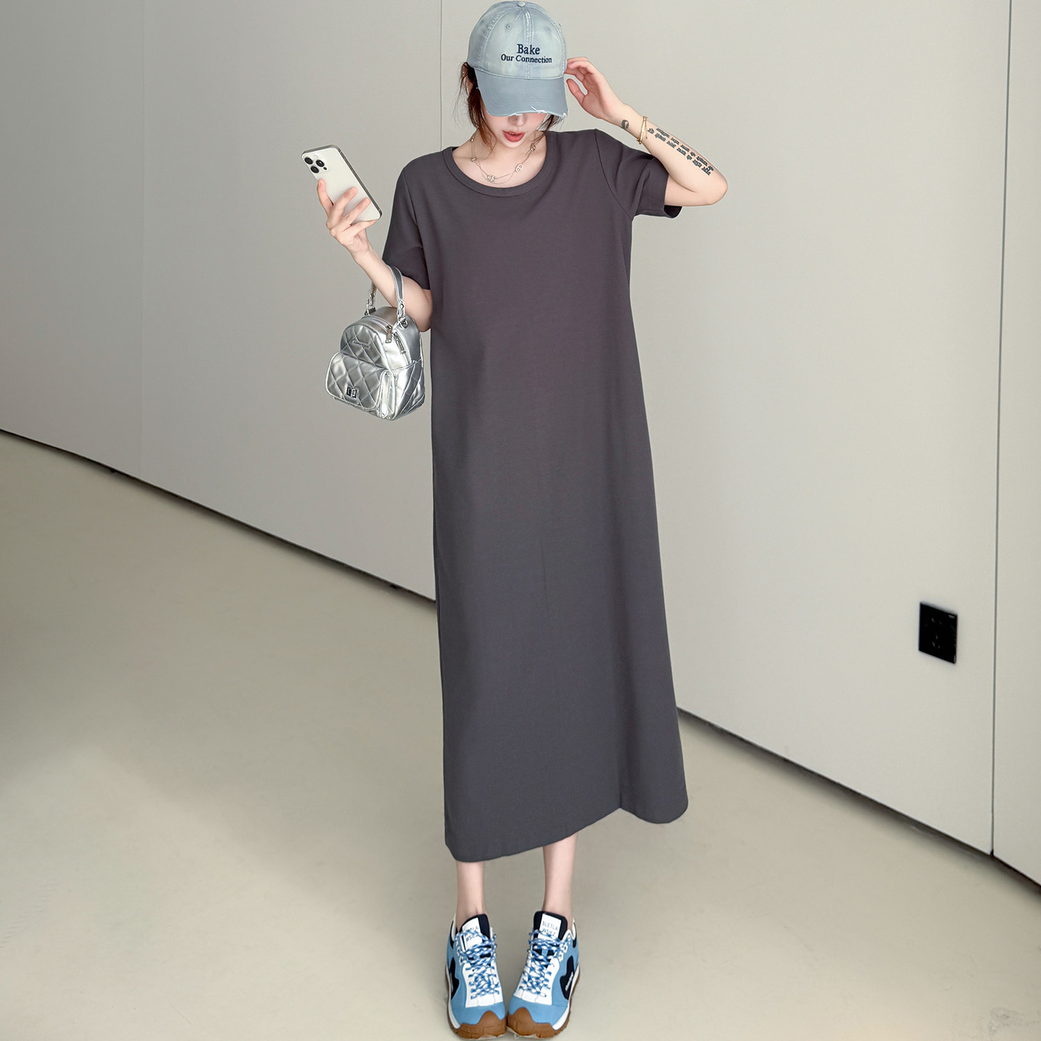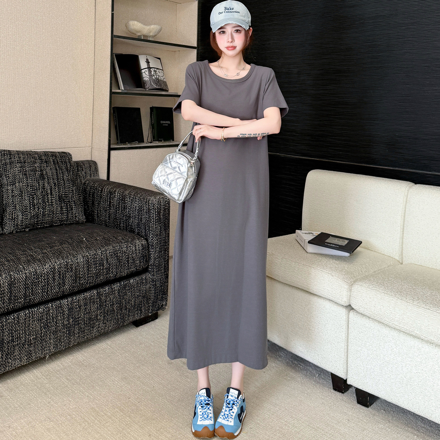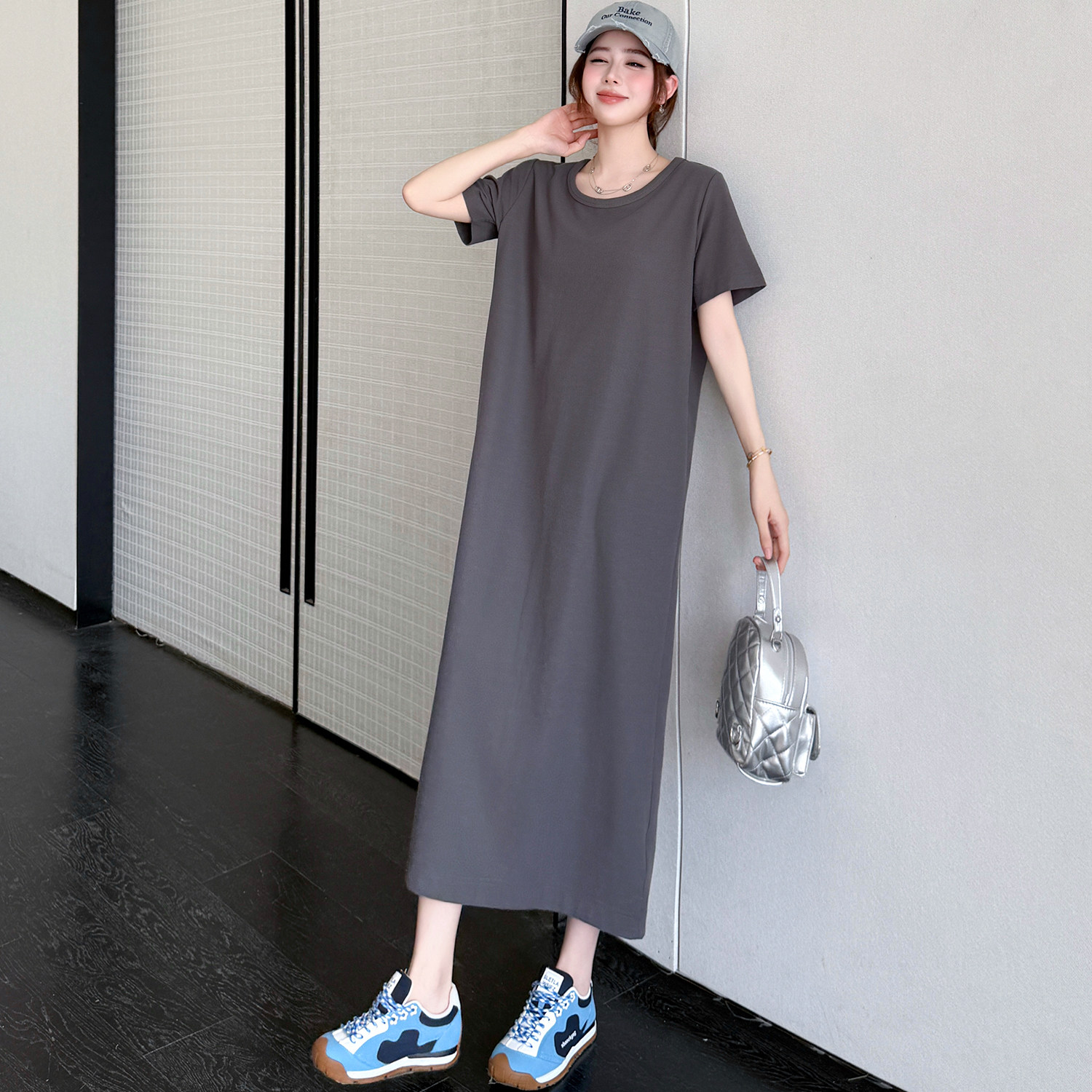 夏季新款大码女装胖mm修身显瘦休闲气质T恤裙日常通勤纯色连衣裙
