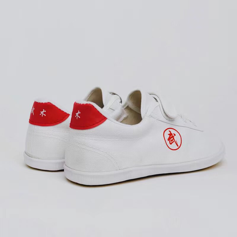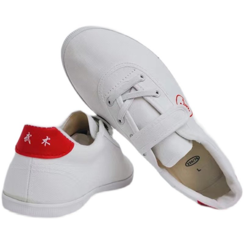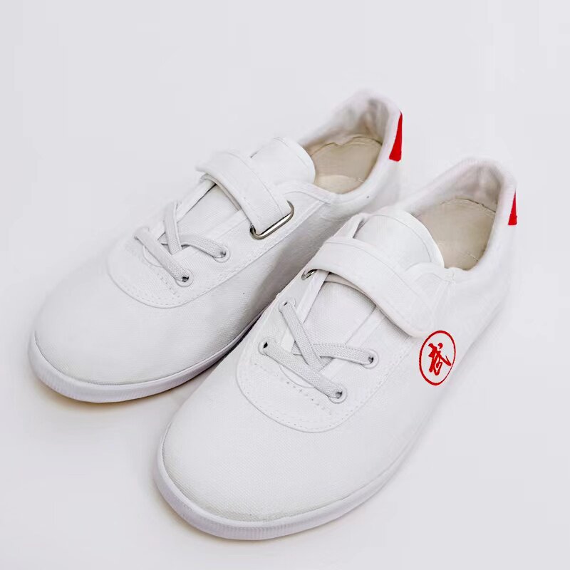 双星武术鞋儿童练功鞋男女款帆布鞋搭扣训练鞋动鞋软底白色魔术贴