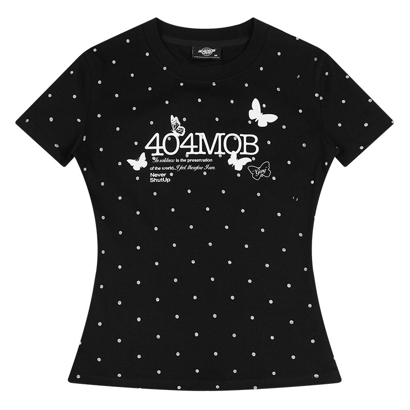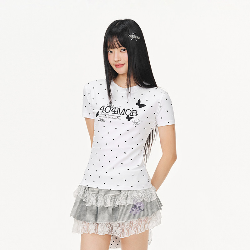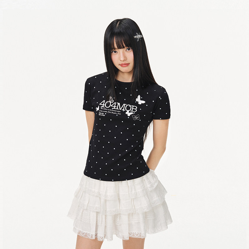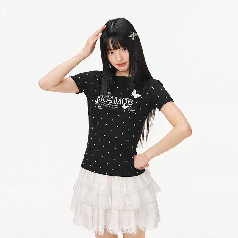 404MOB斑点满印蝴蝶美式正肩修身显瘦短袖t恤2026夏女款辣妹上衣