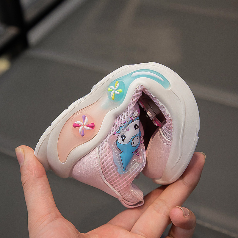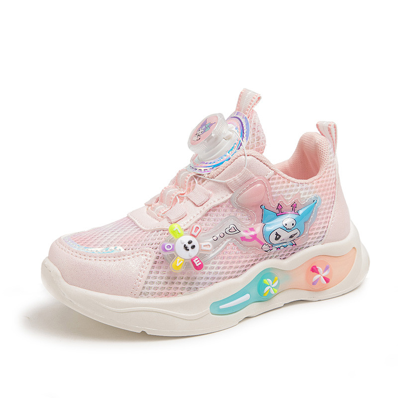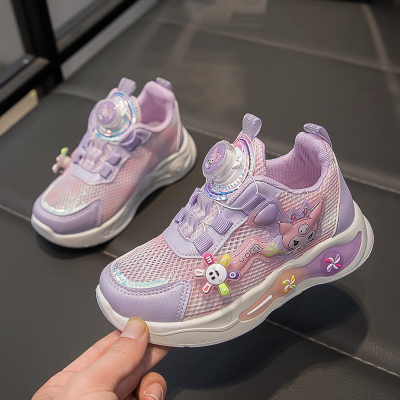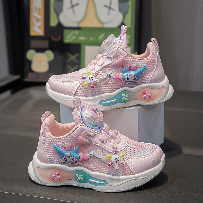 儿童单网面运动鞋2025夏季新款女童鞋子透气老爹鞋旋转纽扣跑步鞋