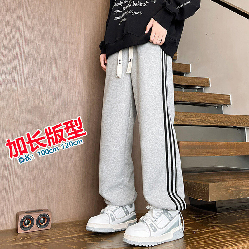 加长版高个子裤子男栋季190cm120青少年厚款条纹直筒卫裤男加绒