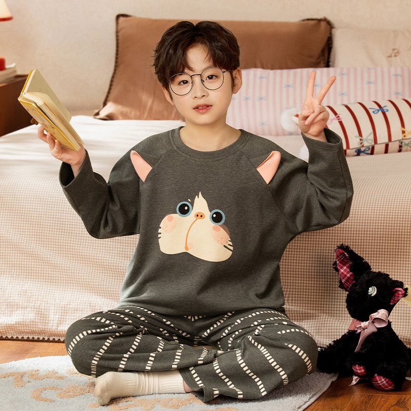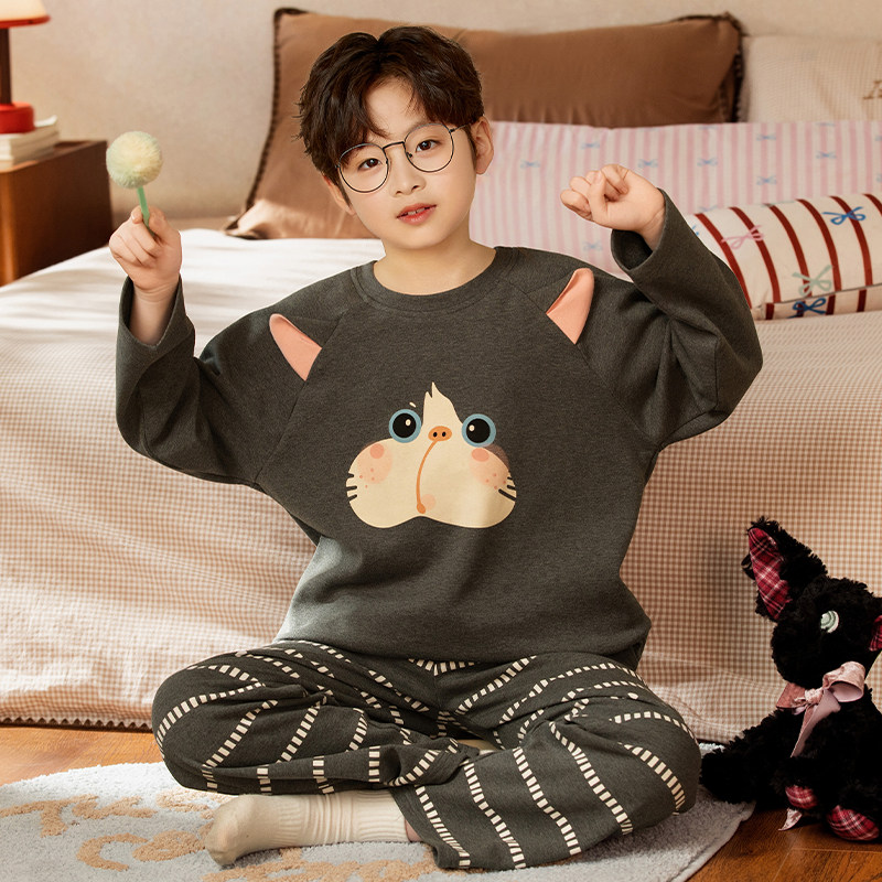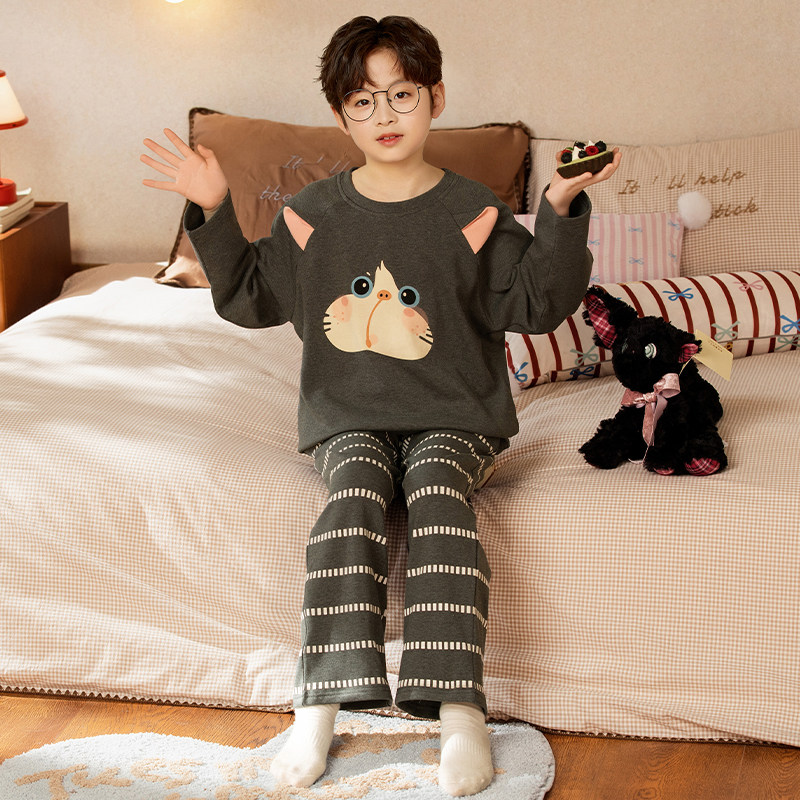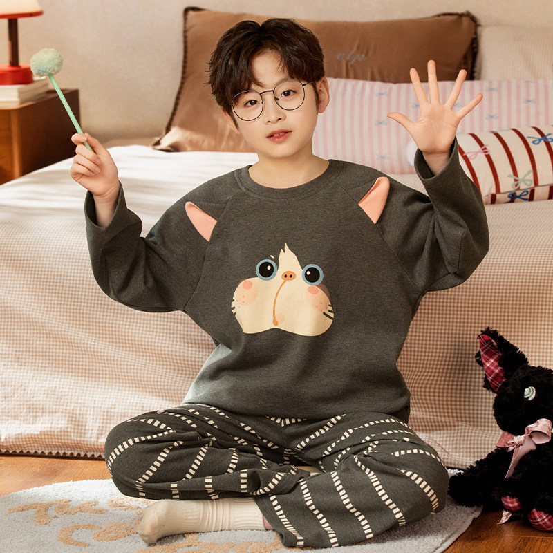 2026年新款男童睡衣洋气纯棉长袖薄款春秋季中大童卡通儿童家居服