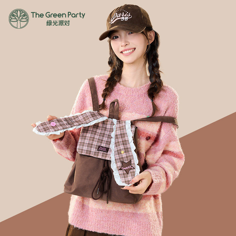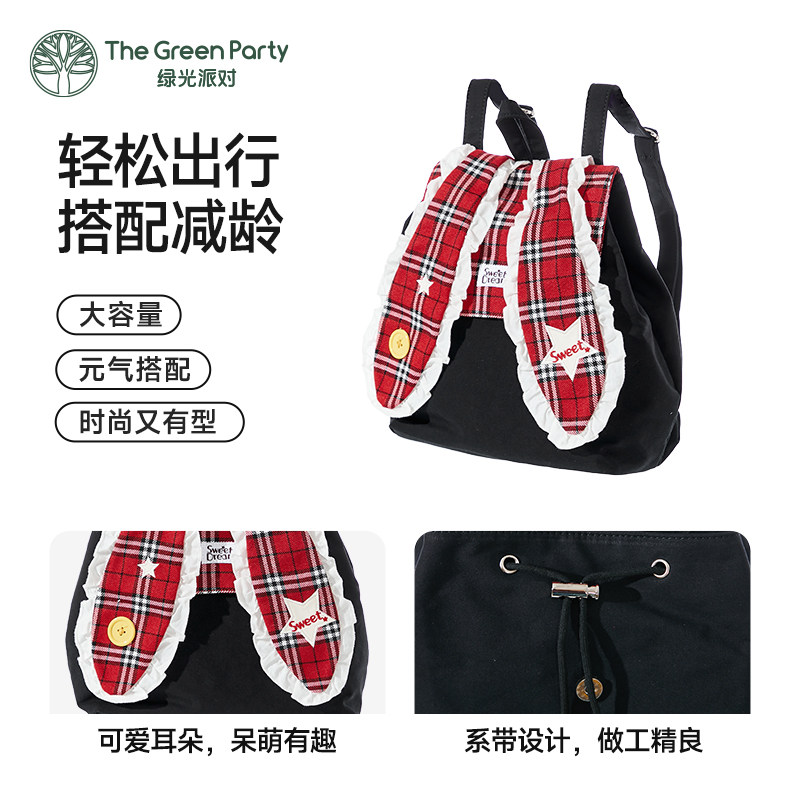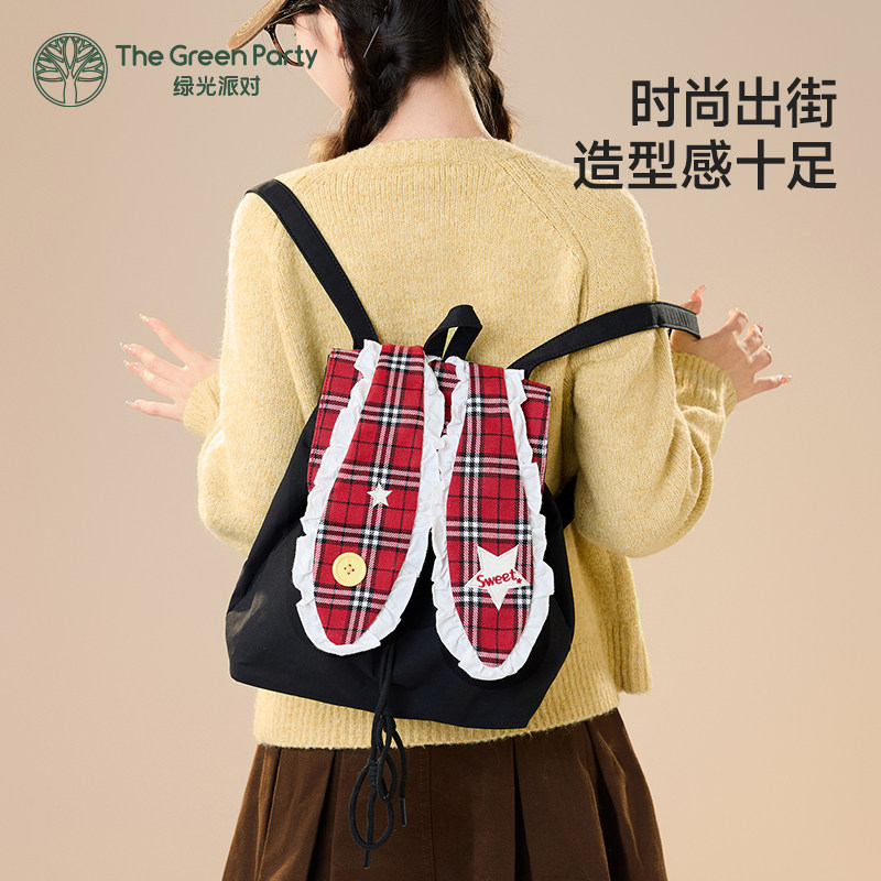 TheGreenParty星星兔子双肩包女初中生书包大容量通勤包学生背包