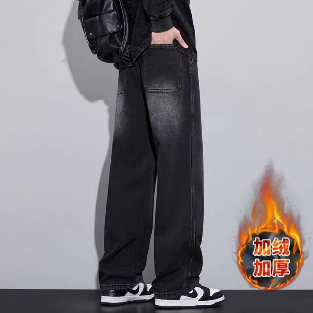 秋冬新款裤子13男孩初高中14大童学生15青少年酷帅加绒直筒牛仔裤