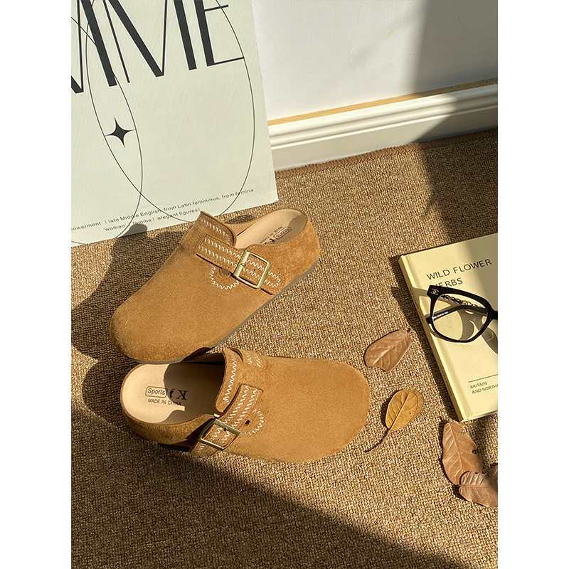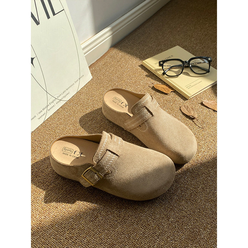 2026春季新款半拖勃肯鞋内增高厚底时装单鞋慵懒风纯色包头浅口鞋