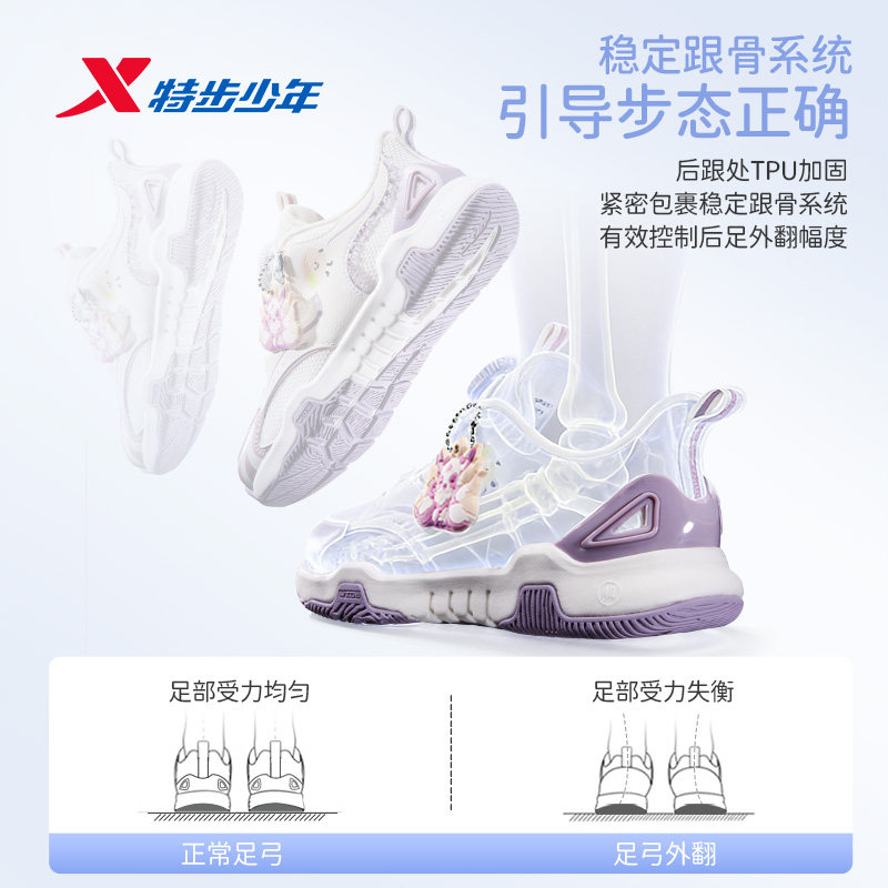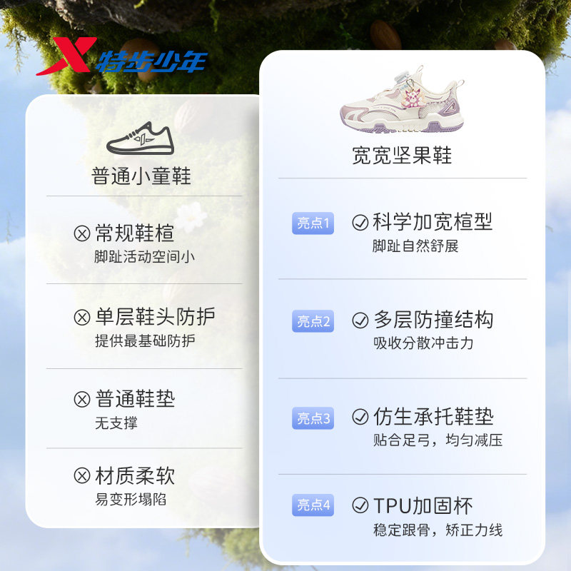 宽宽坚果鞋|特步童鞋儿童跑步鞋女童春秋季新款耐磨幼小童运动鞋