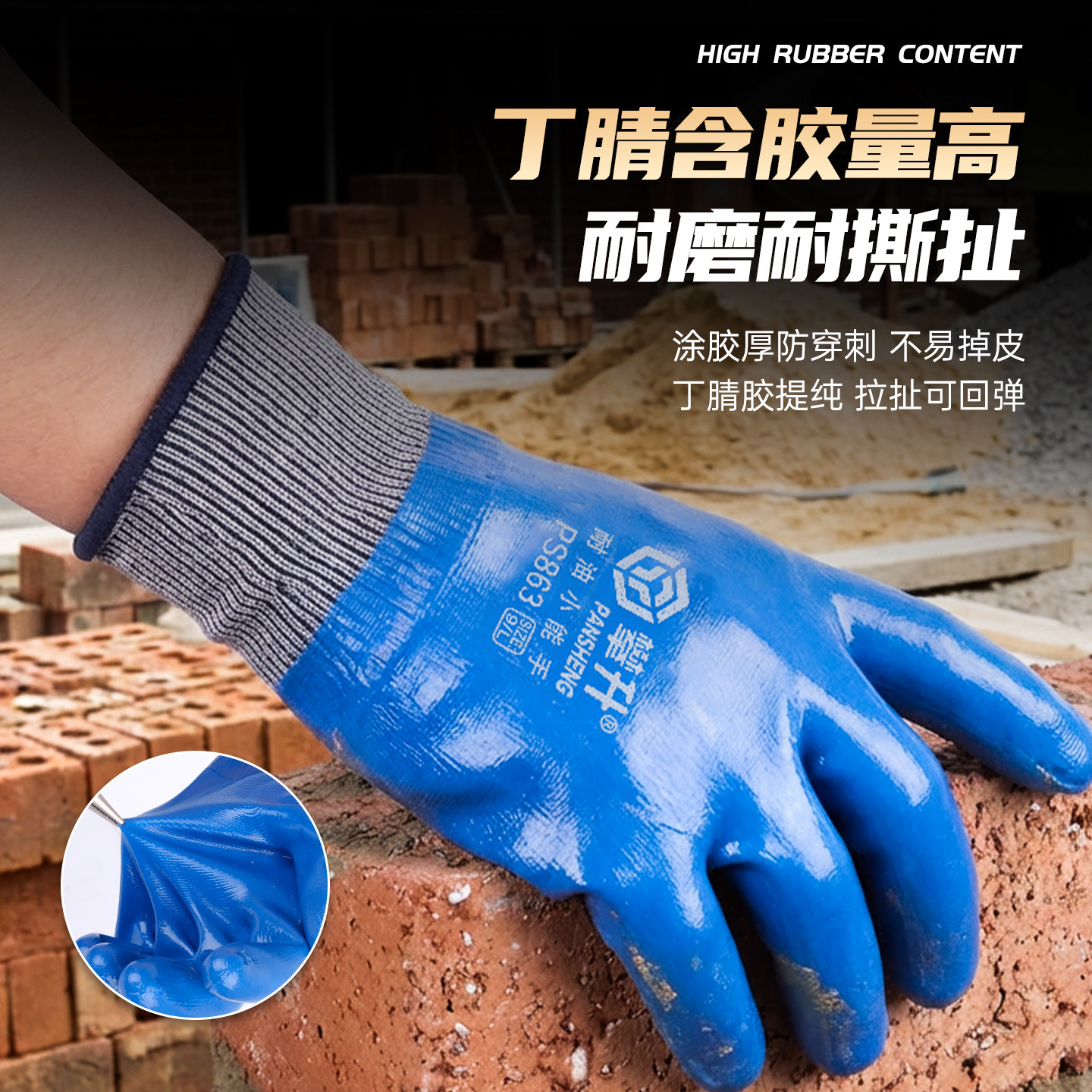 手套劳保耐油丁腈工作防水防滑劳动干活大号全胶浸胶橡胶乳胶耐磨
