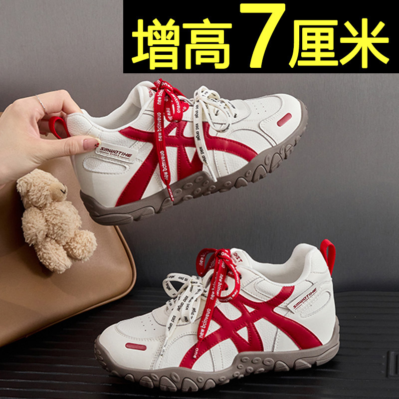 内增高芭蕾德训鞋女2026新款网面透气厚底休闲鞋复古运动小白鞋