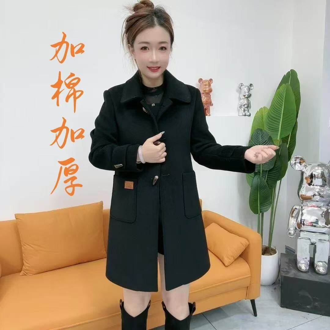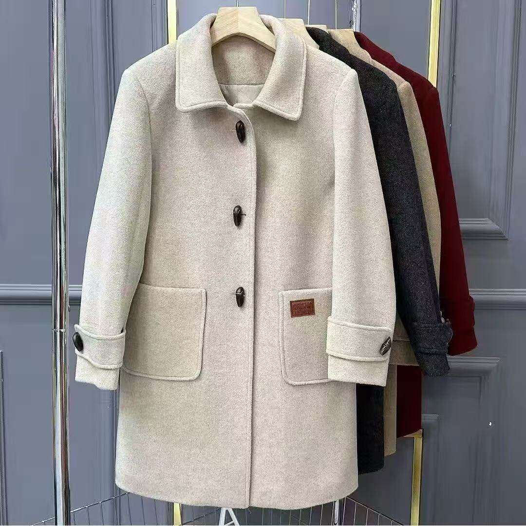 中年女妈妈装羊毛呢大衣牛角2025冬季新款加棉加厚双面绒大衣外套