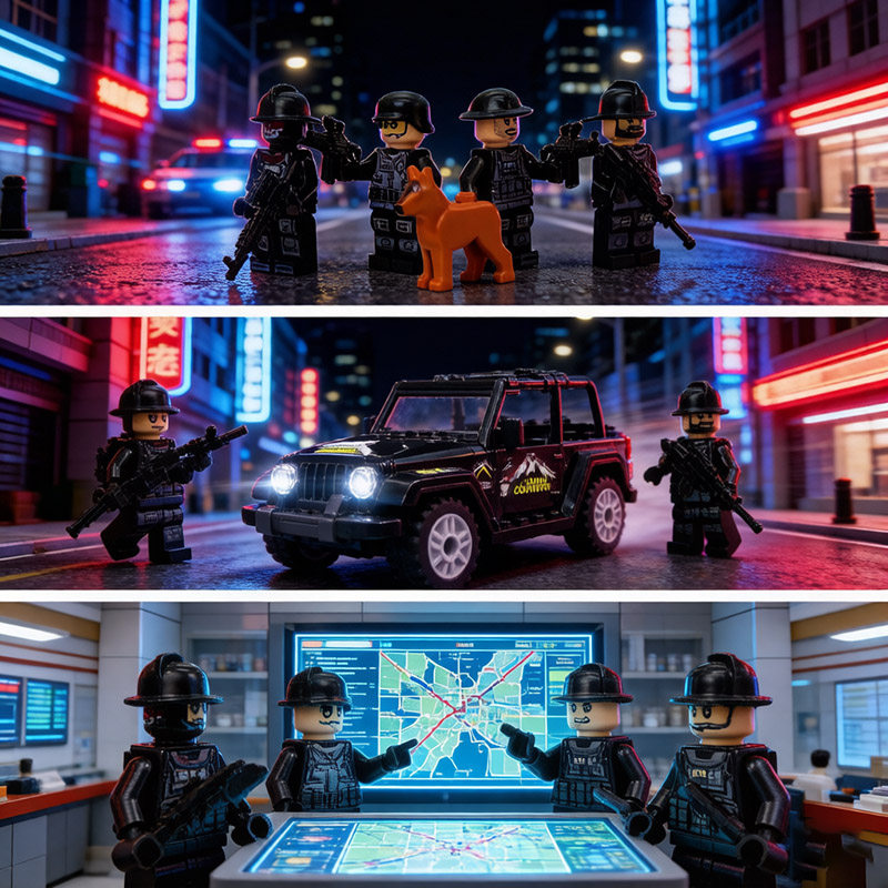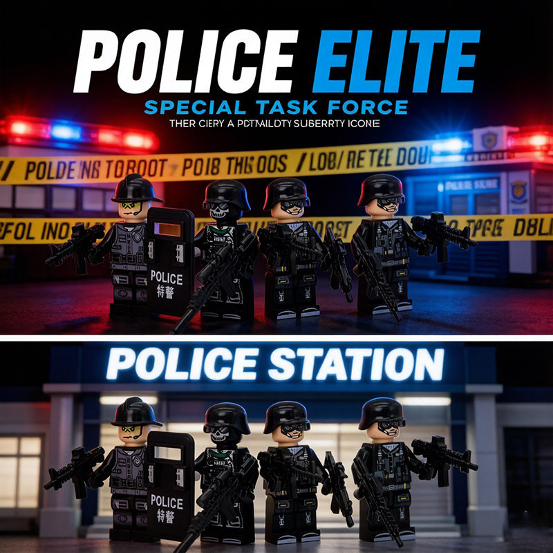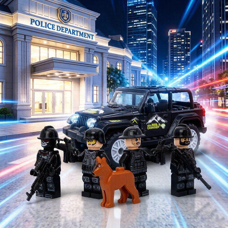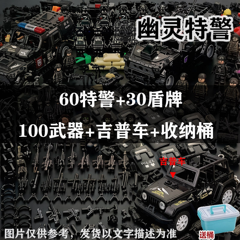 军事积木人仔特种兵中国幽灵特警军事阿尔法战狼儿童益智拼装玩具