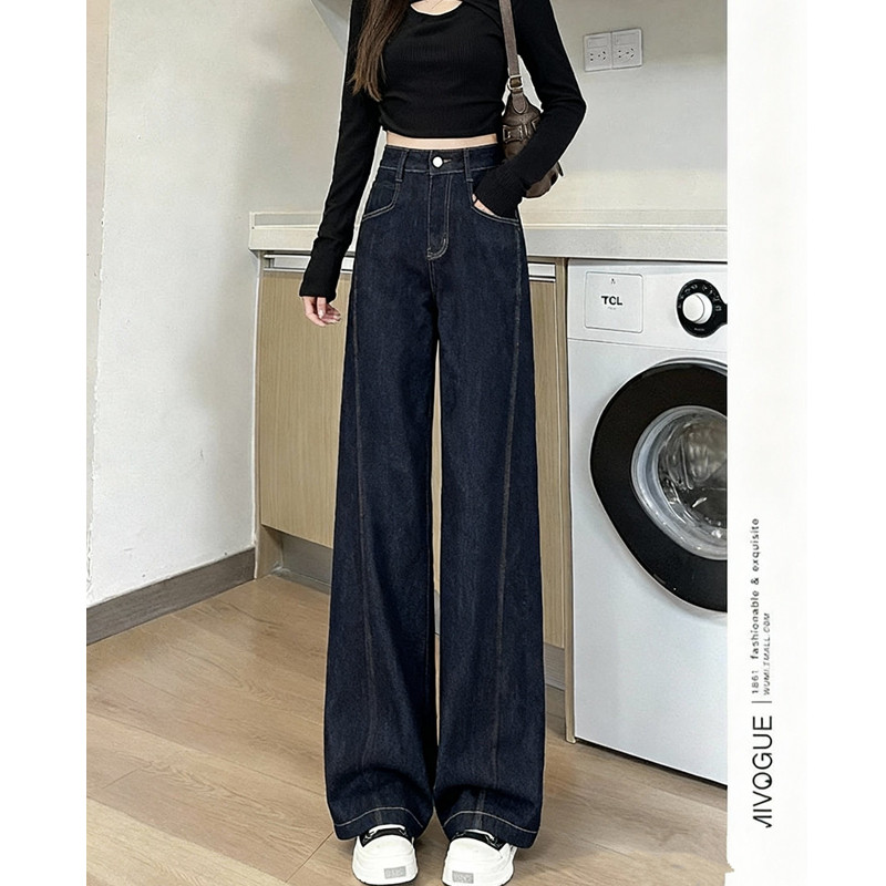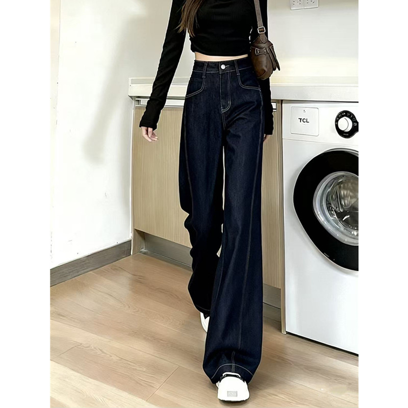 今年流行爆款阔腿牛仔裤女春季秋冬2026新款丹宁蓝弹力直筒拖地裤